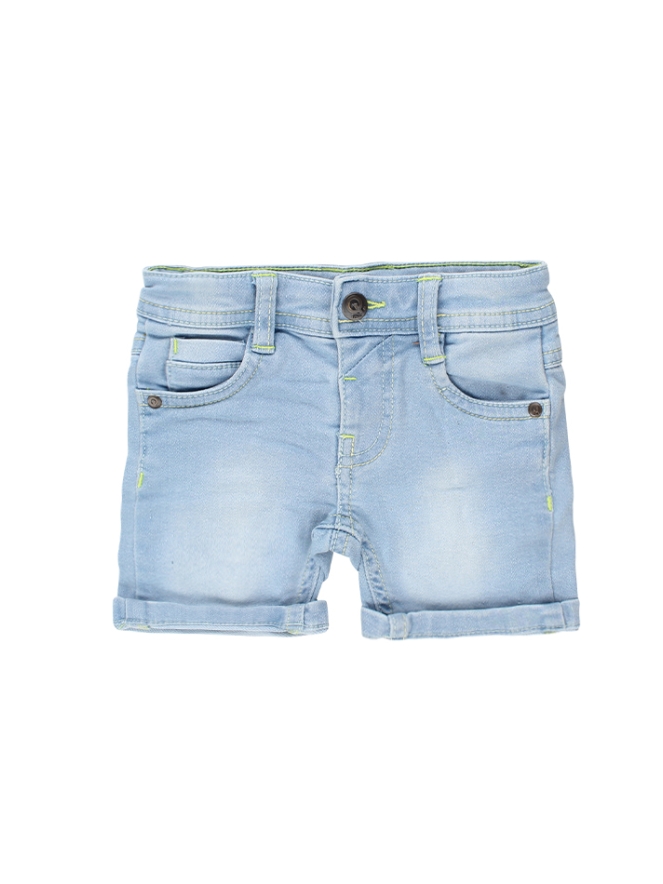 Denim shorts van FlinQ. De shorts hebben een omslag pijp en 5 zakken. Materiaal: 76% katoen, 23% polyester, 1% elasthan. Wassen op 30 graden, niet in de droger, niet bleken, kan gestreken worden.