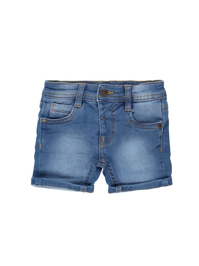 Denim shorts van FlinQ. De shorts hebben een omslag pijp en 5 zakken. Materiaal: 76% katoen, 23% polyester, 1% elasthan. Wassen op 30 graden, niet in de droger, niet bleken, kan gestreken worden.