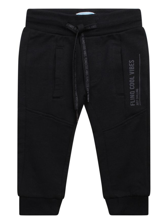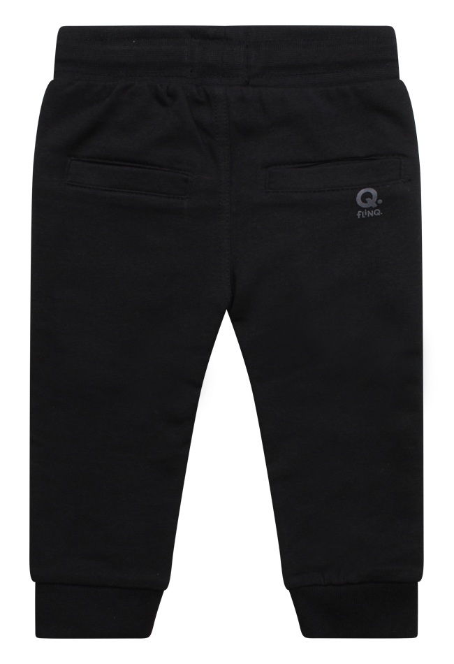 Deze Jogging broek heeft een elastieken band met daarin een koord om de taille strakker te maken. Aan de onderkant van de broek zit een aansluitende band en de voorkant van de broek zitten strookzakken. Aan de achterkant paspel zakken.