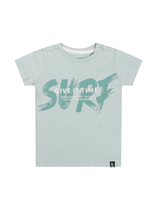 Dit t-shirt heeft een korte mouw en een ronde hals. Bij de kleinste maten zitten op de schouder twee drukknoopjes zodat het aan/-uittrekken gemakkelijker gaat. Aan de voorkant zit een tekst opdruk. Dit t-shirt is verkrijgbaar in drie verschillende kleuren.