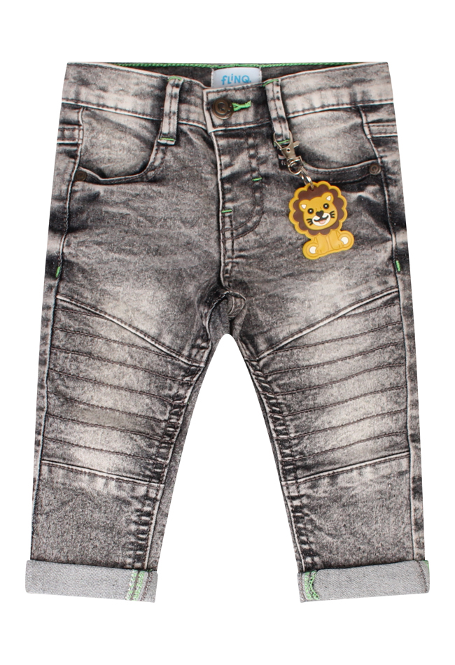 Dit stoere jongens broekje heeft een omslag en is een 5 pocket model. met verstelbare tailleband en veel stretch. Bij dit broekje zit een sleutelhanger met leeuw.