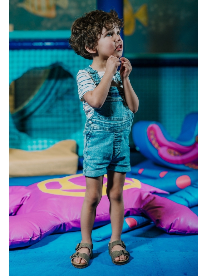 Deze stoere korte tuinbroek voor baby jongens heeft in de zij een drukknoop, twee steekzakken en meer leuke details zoals een klepzak voorop en omgeslagen broekspijpen.