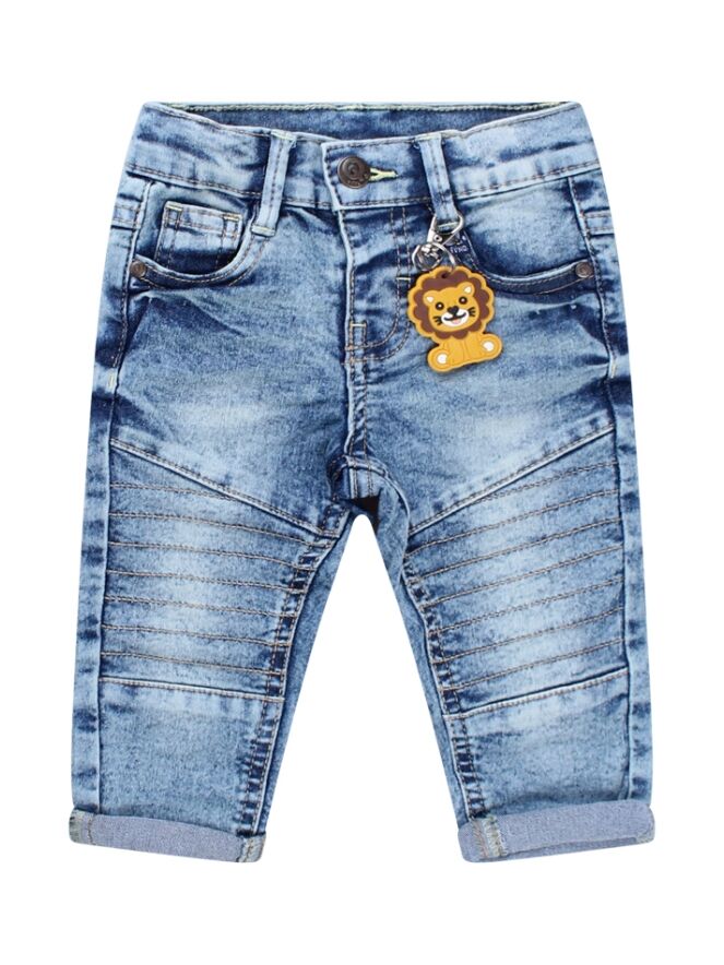 Stoere baby jongens spijkerbroek met doorgestikte knievlakken. Deze broek is een 5 pocket model en is verstelbaar in de taille. Twijfel over de maat? Kijk dan eens naar onze maattabellen.
