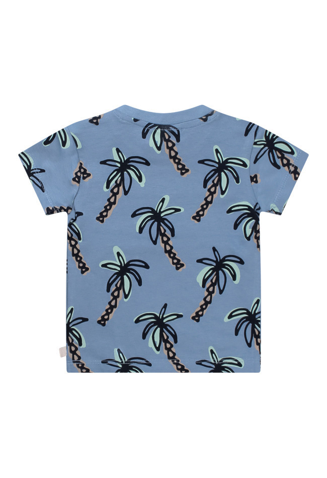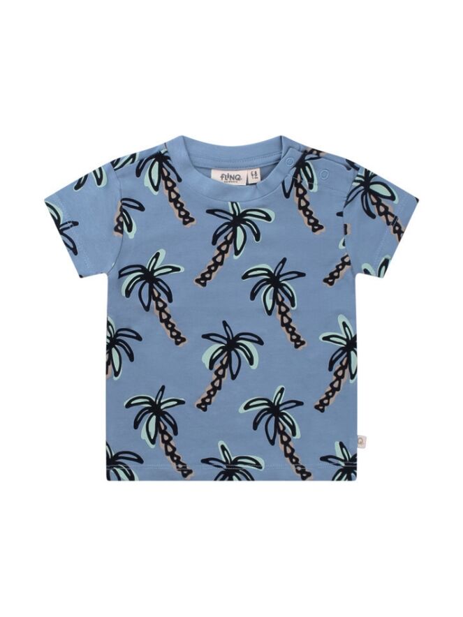 Dit Flinq newborn T-shirt is perfect voor de allerkleinsten! Gemaakt van 95% biologisch katoen en 5% elastaan, voelt het heerlijk zacht en rekbaar aan, ideaal voor de gevoelige babyhuid. De palmboomprint geeft een zomerse en speelse uitstraling. Dankzij de drukknopen op de schouder is het T-shirt gemakkelijk aan en uit te trekken. De ronde hals zorgt voor een comfortabele pasvorm, terwijl de korte mouwen voldoende ventilatie bieden op warme dagen.