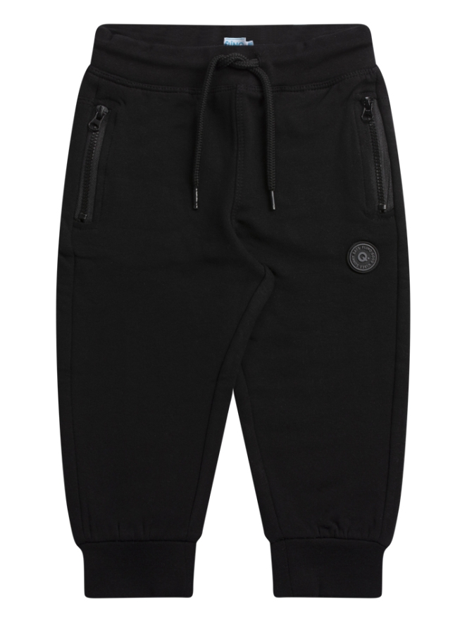 Comfortabel en sportief sweat jogging broekje van Flinq. Deze broek heeft twee ritszakken en een gewone zak achterop. Leuk te combineren met een vestje of straks gewoon met een T-shirt.
