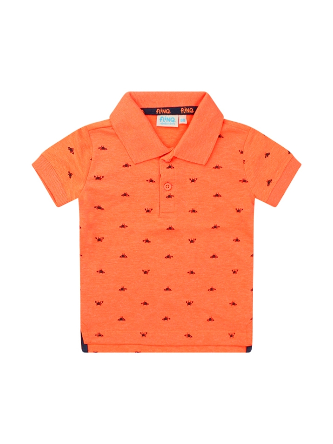 Mini polo's voor mini boys! Deze polo heeft een allover print met krabbetjes in contrasterende kleur. Voor een casual tot sporty beachy look.