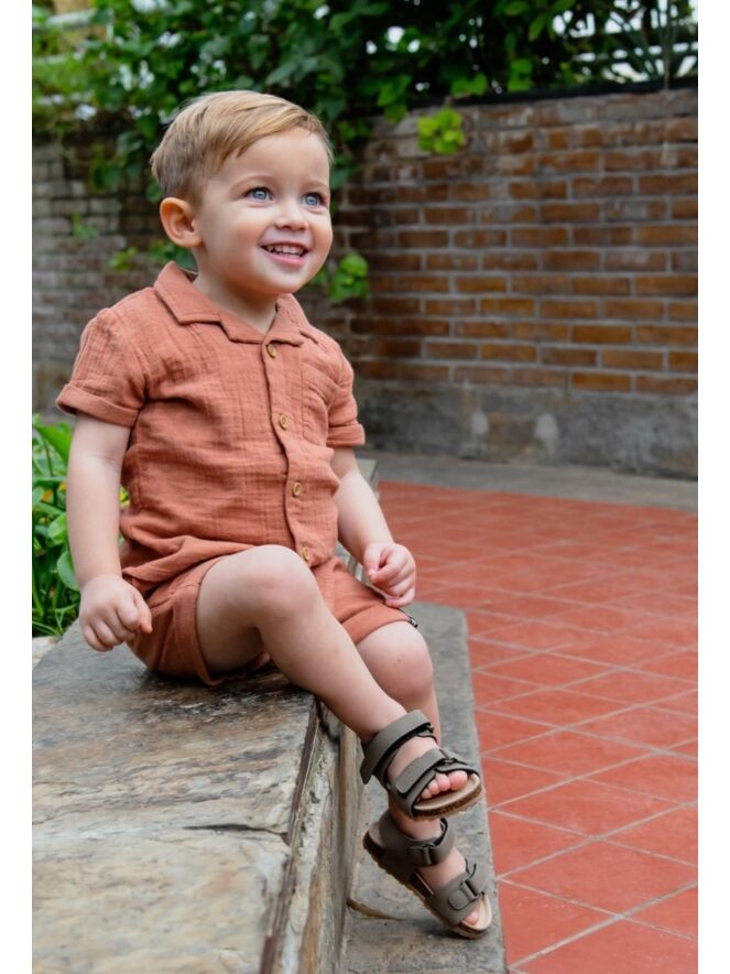 Dit Flinq mousseline overhemd is de perfecte combinatie van stijl en comfort voor babyjongens deze zomer! Gemaakt van 100% ademend katoen, voelt de zachte mousseline stof heerlijk licht aan op de huid, ideaal voor warme dagen. Het overhemd heeft een klassieke reverskraag en een knoopsluiting, waardoor het makkelijk aan- en uit te trekken is. De korte mouwen geven het een luchtige uitstraling, terwijl het borstzakje zorgt voor een schattig en speels detail.