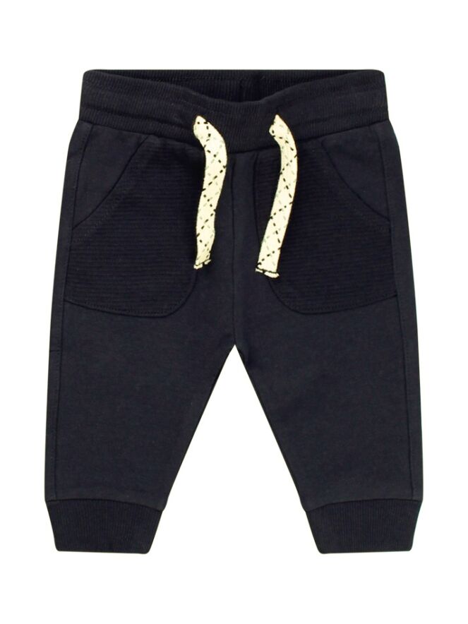 Sportieve sweatpant voor baby jongens van ons eigen merk Flinq. Met leuke steekzakken en een zakje achterop.