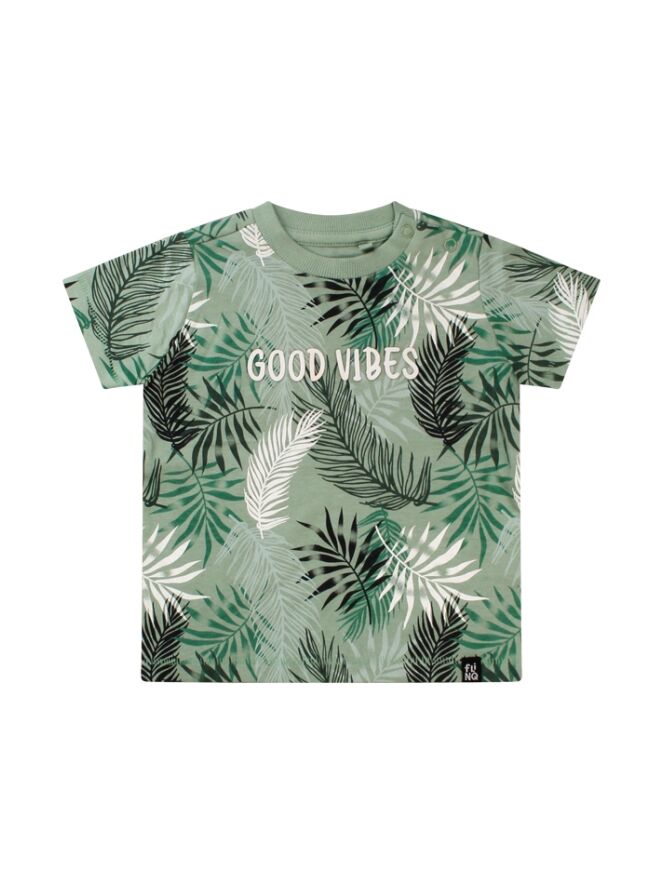 Only Good Vibes! Dit mooie T-shirt vol met bladeren is gewoon een comfortabel shirt voor een stoere look! Leuk bij sportieve broekjes maar ook bij jeans. Hoe ga jij hem combineren?