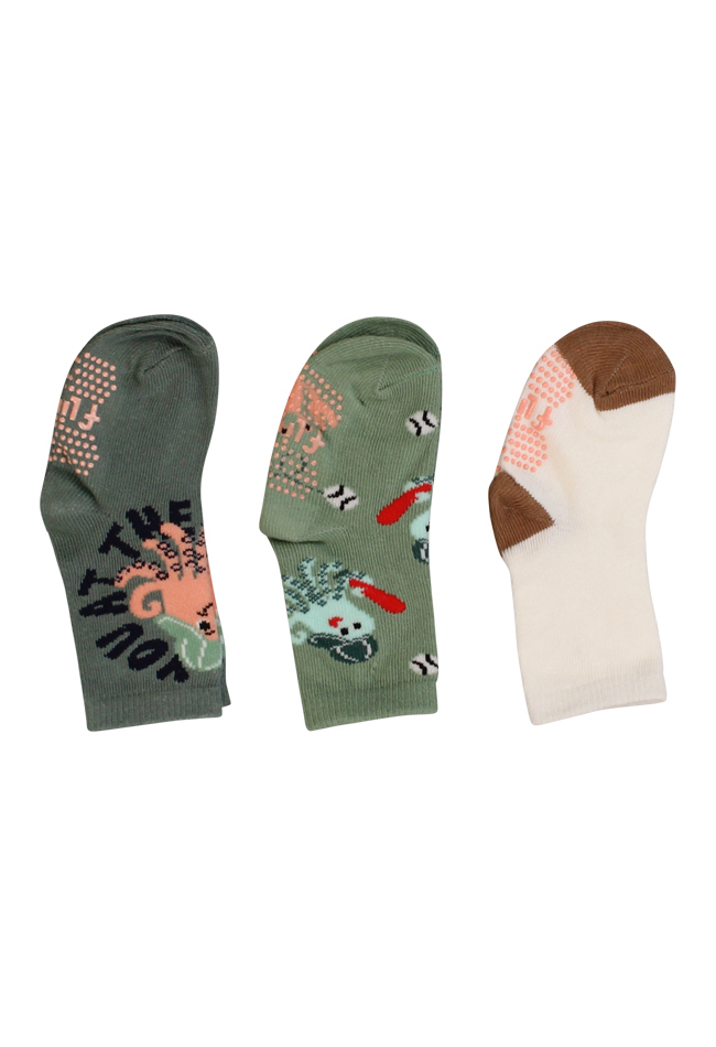 3-Pack sokken voor baby jongens met antislip onder het voetbed. 1 Paar effen gekleurd, 2 paar met print stoere inktvis.