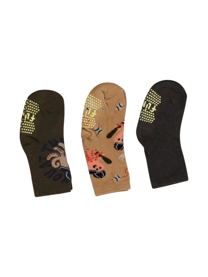 3-Pack sokken voor baby jongens met antislip onder het voetbed. 1 Paar effen gekleurd, 2 paar met print stoere inktvis.
