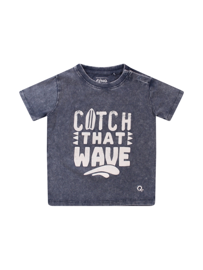 Catch that wave! Voor kleine surf dudes in de dop dit stoere T-shirt voor baby jongens in een gebleekte wassing.