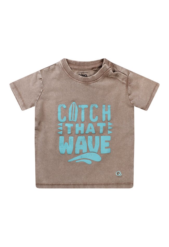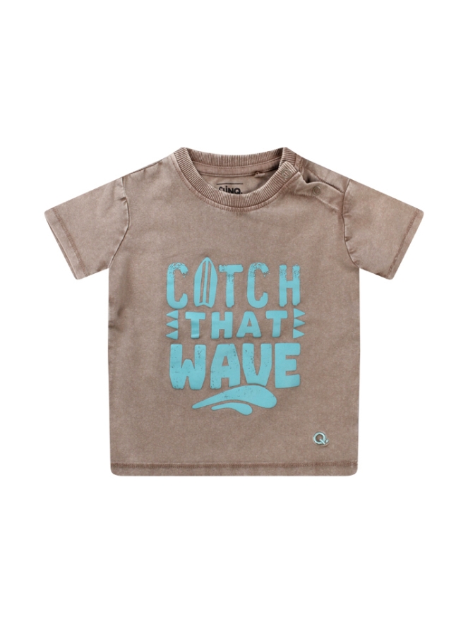 Catch that wave! Voor kleine surf dudes in de dop dit stoere T-shirt voor baby jongens in een gebleekte wassing.