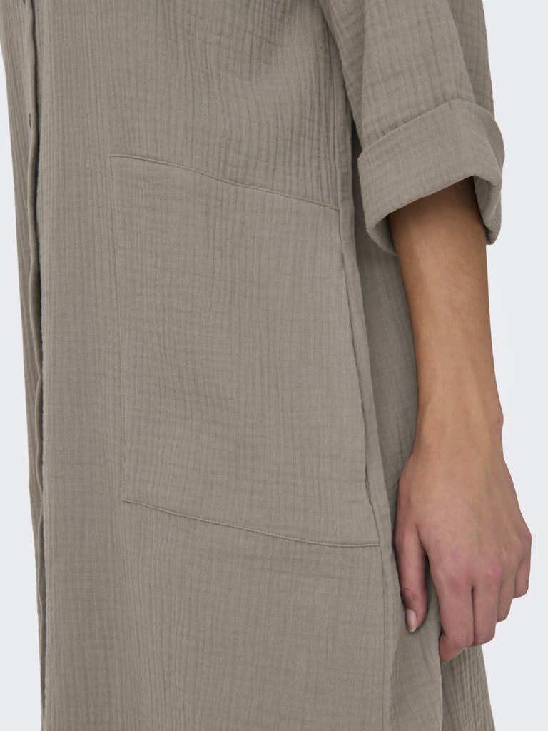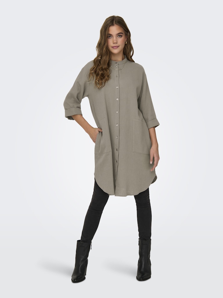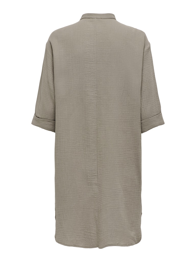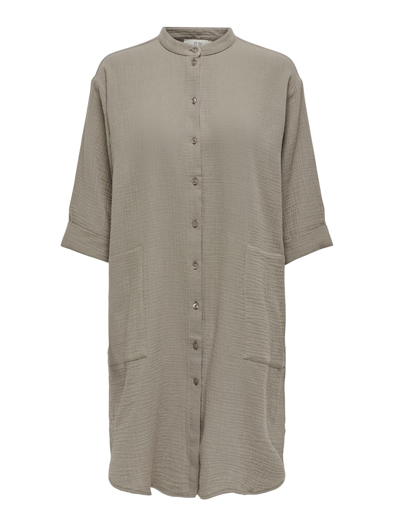 Deze blouse van JDY heeft een halve mouw en is een oversized model en valt net boven de knie. De blouse heeft twee grote steekzakken en loopt rond aan de onderkant. De mouwen zijn omgeslagen. Het materiaal is 100% katoen waarvan 20% gerecycled katoen.