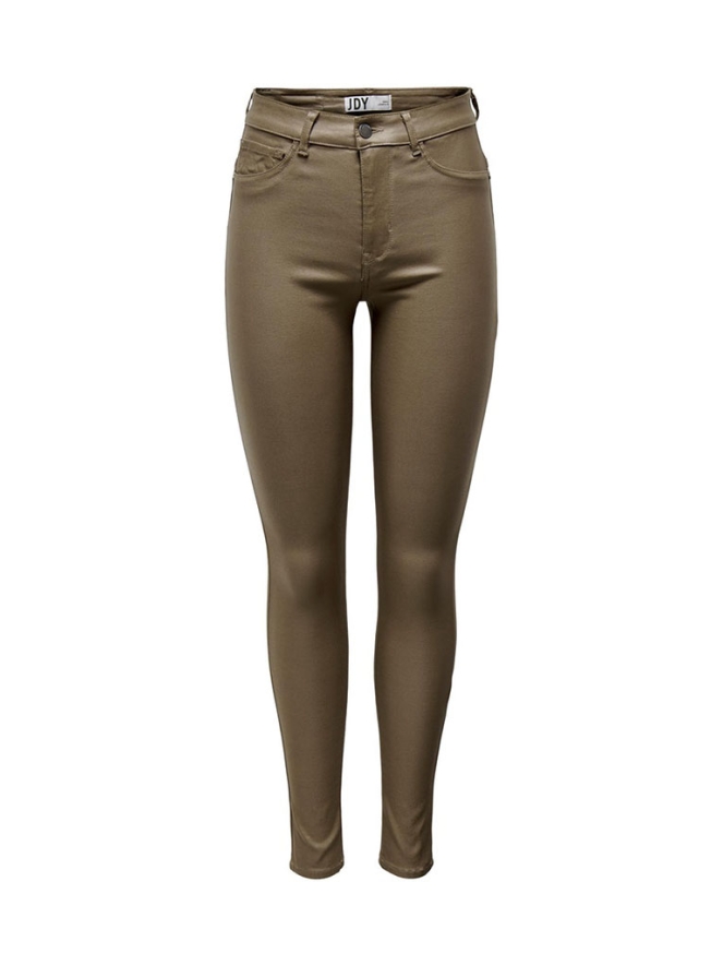 Deze broek heeft een coated look en feel. De broek heeft een hoge taille en een skinny fit.