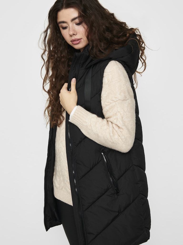 Je wilt nooit meer anders! Deze heerlijke puffer bodywarmer is een lang model en heeft een vaste capuchon. Valt iets oversized op maat. Pluspunt is dat de rits ook open kan van onderen.