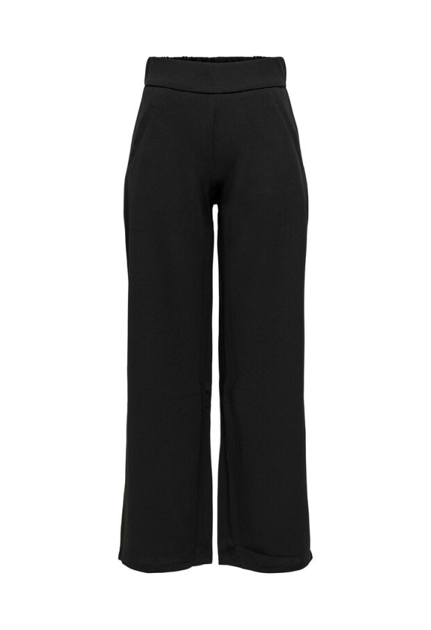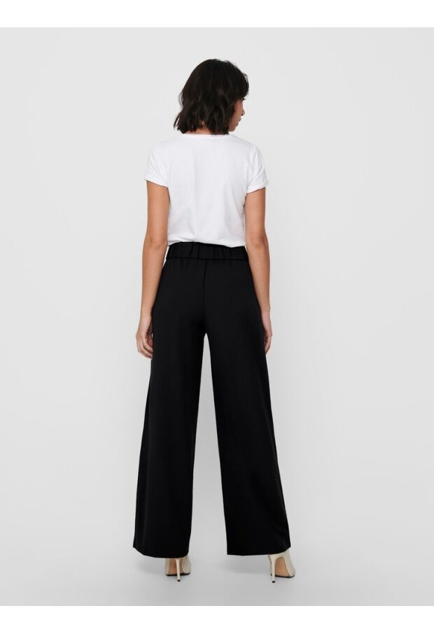 De broek heeft wijde pijpen en een elastische taille. Aan de voorkant zitten twee steekzakken.