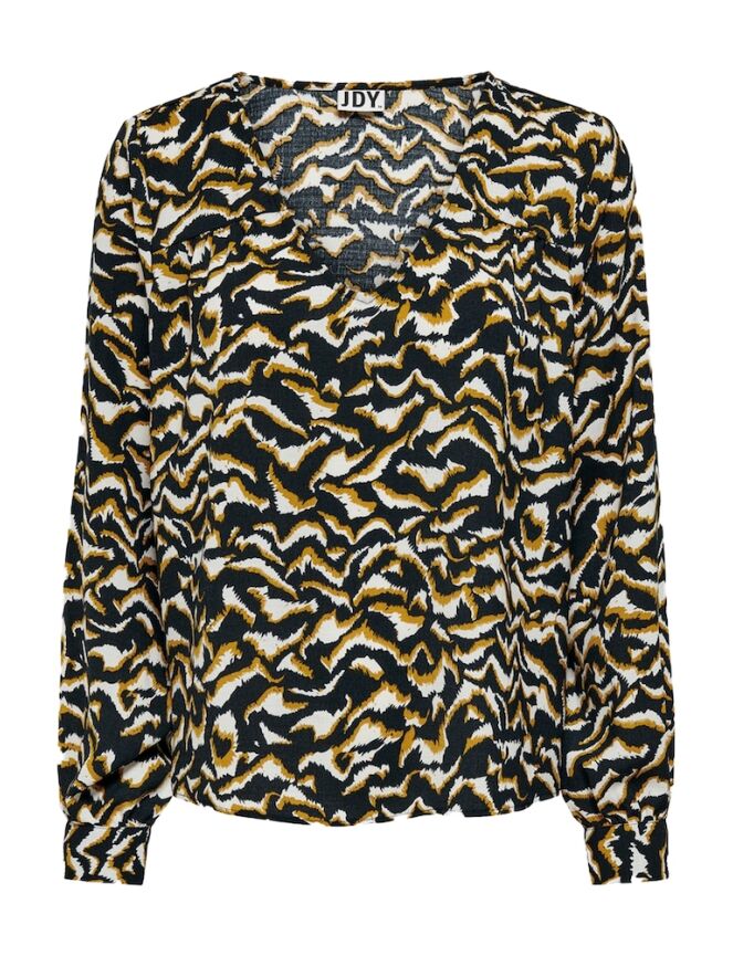 Blouse top van JDY. De top heeft een animal achtige print en een v-hals. Valt wijd, dit hoort zo. Materiaal: 100% polyester. Wassen op 30 graden, niet bleken, niet in de droger, niet chemisch reinigen, lauw strijken.