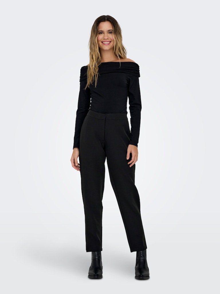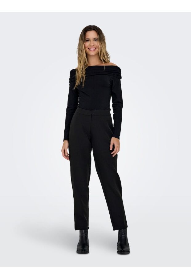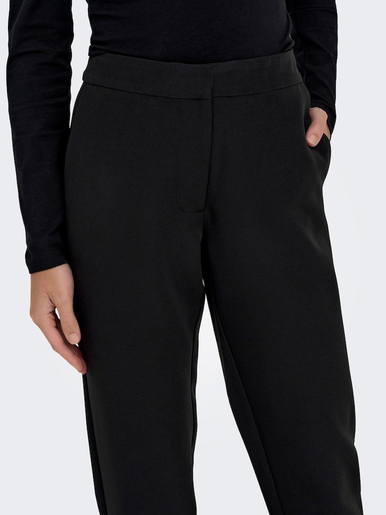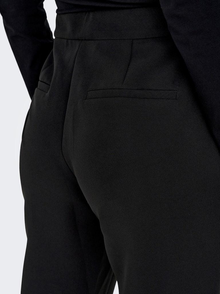 Deze nette zwarte broek heeft twee steekzakken en achterop twee sierzakken. Deze broek is een wat korter model.