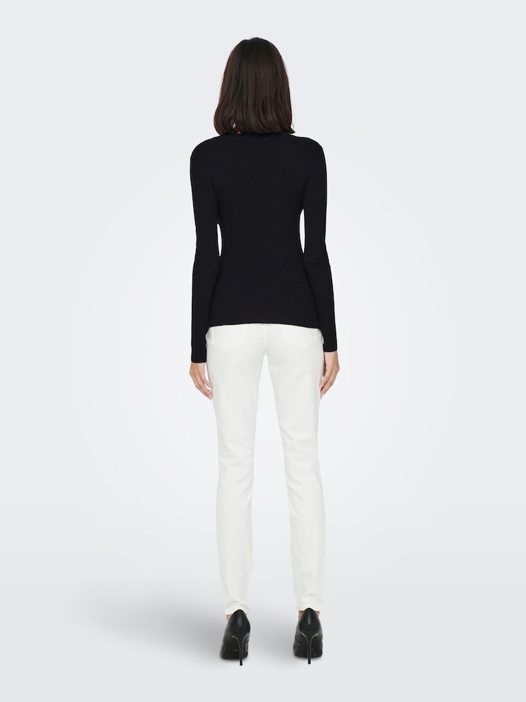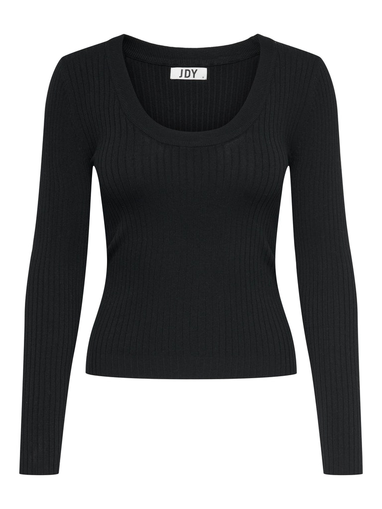 Deze top heeft een diepe ronde hals. Dit shirt heeft veel stretch en is van ribstretch.