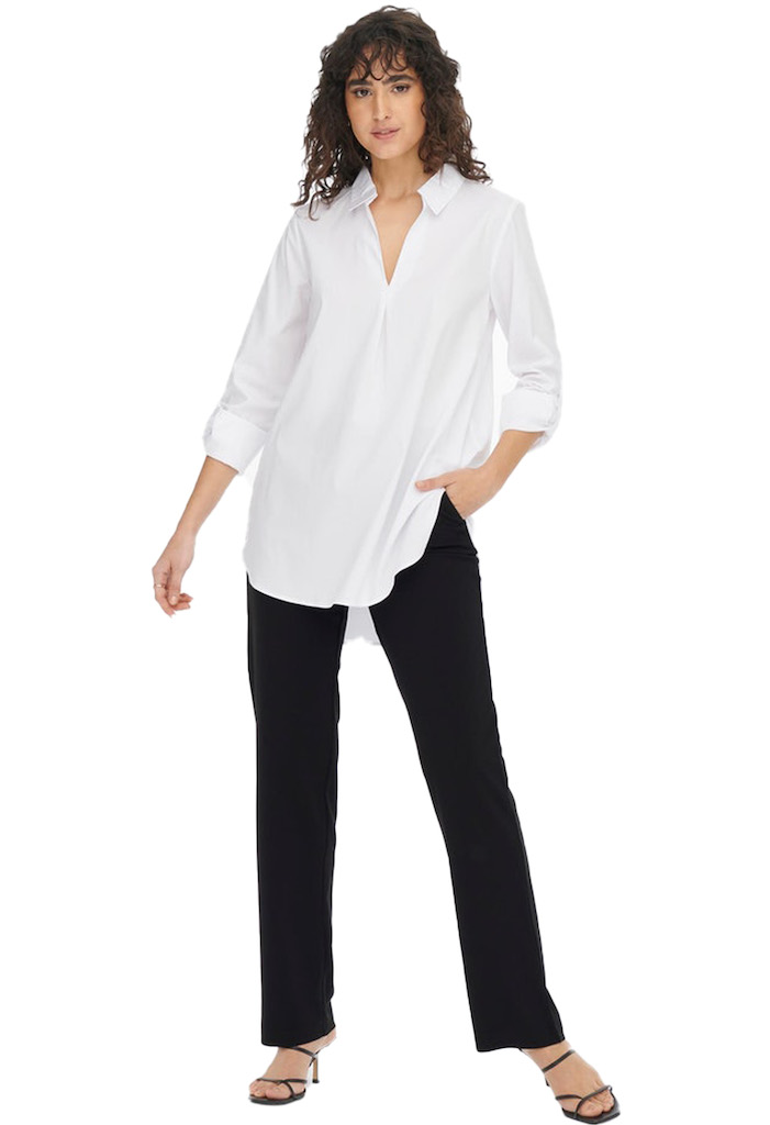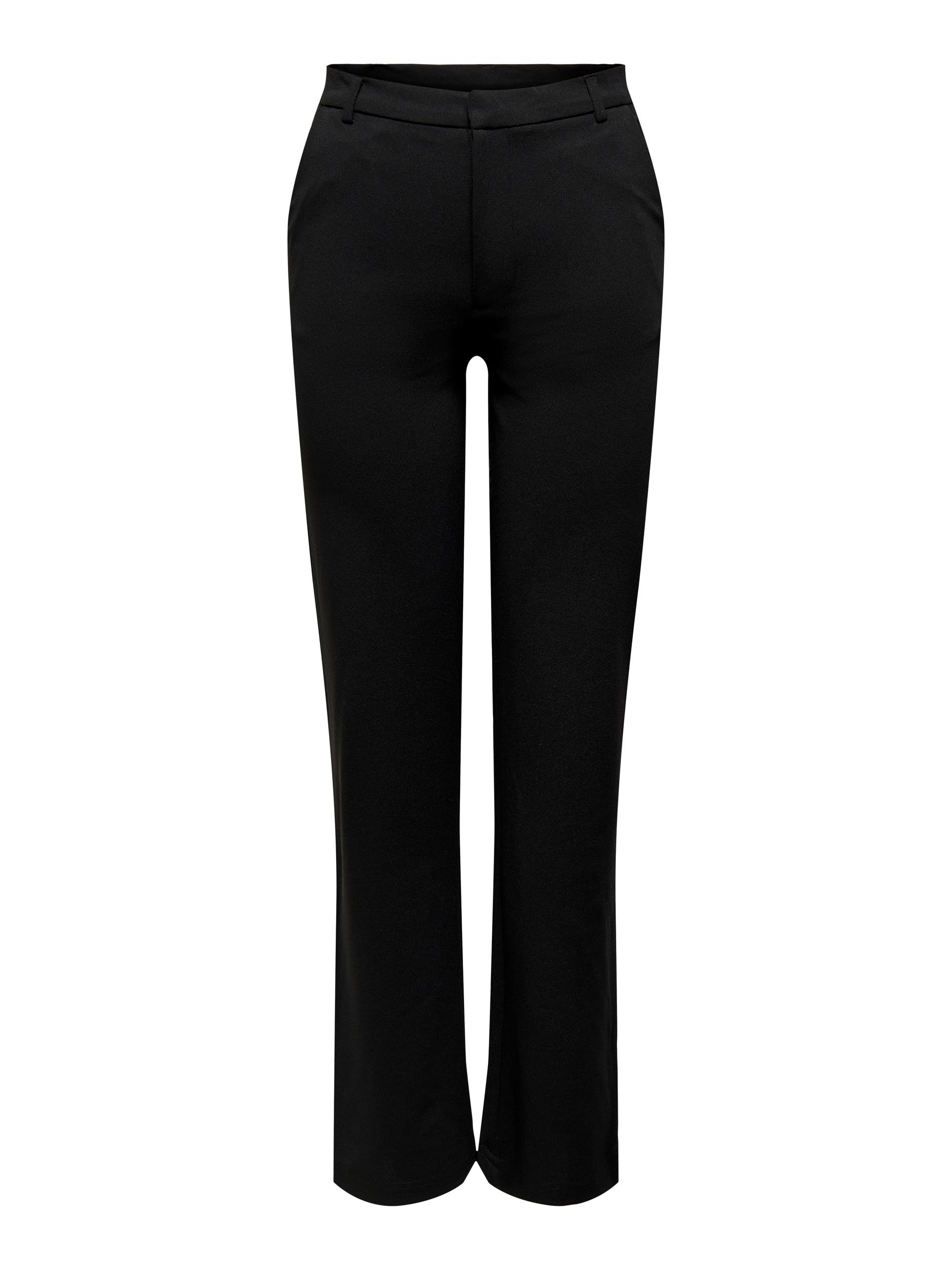 Pantalon van JDY. De broek heeft een fijne witte en bruine streep en wijde, rechte pijpen. Lengte maat 32. Valt op maat. Materiaal: 95% polyester, 5% elasthan. Wassen op 30 graden, niet bleken, niet in de droger, kan gestreken worden.