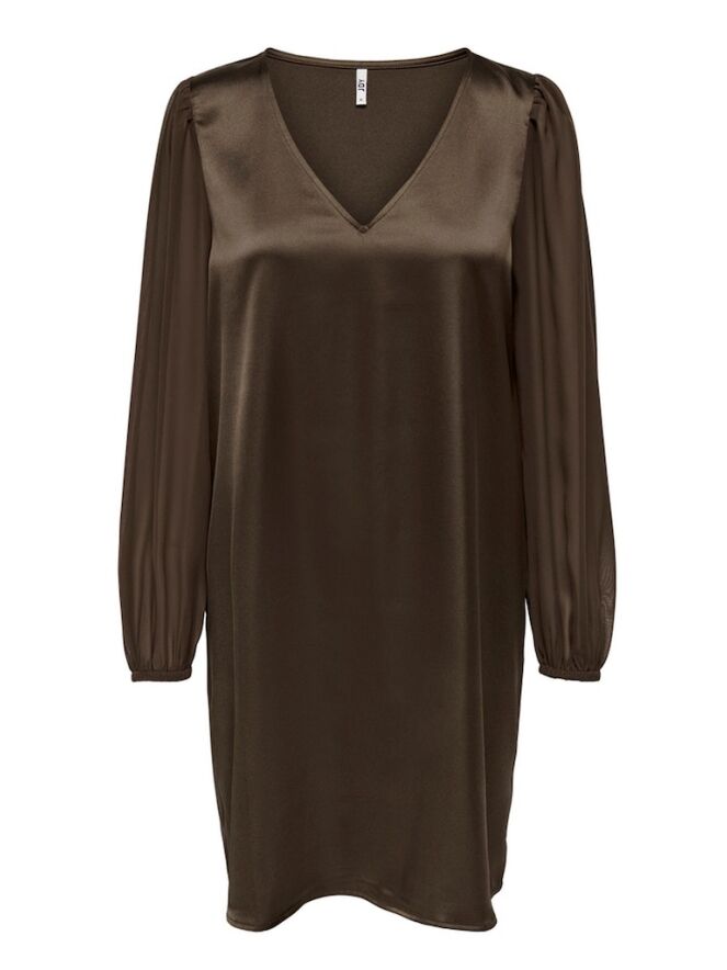 Jurkje van JDY. Het jurkje is van gladde satijnen stof en heeft mesh mouwen. Het jurkje heeft pofmouwen en een losse fit. Materiaal: 96% polyester, 4% elasthan, mouwen: 110% polyester. Wassen op 30 graden, niet bleken, niet in de droger, laag strijken.
