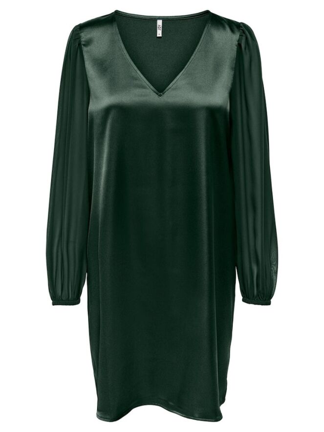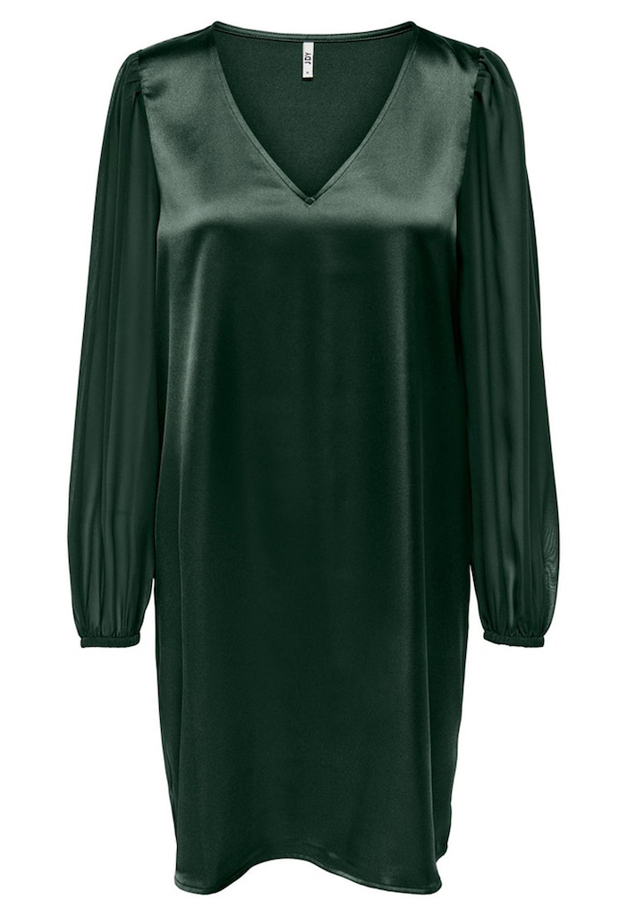 Jurkje van JDY. Het jurkje is van gladde satijnen stof en heeft mesh mouwen. Het jurkje heeft pofmouwen en een losse fit. Materiaal: 96% polyester, 4% elasthan, mouwen: 110% polyester. Wassen op 30 graden, niet bleken, niet in de droger, laag strijken.