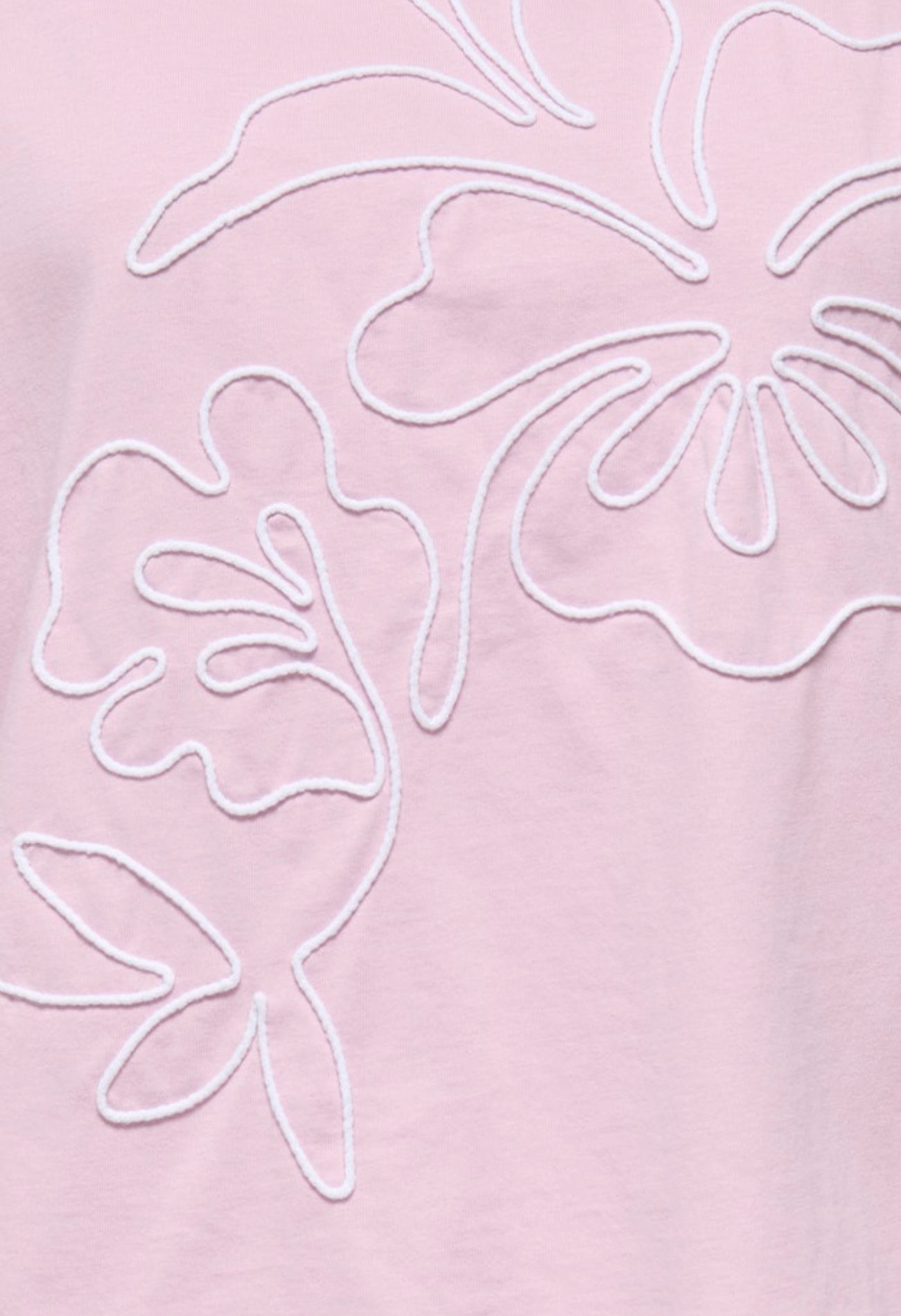 Dit T-shirt met een wide fit heeft een prachtig bloemmotief van een opgestikt koord. Makkelijk te combineren met jeans of een mooie zwarte pantalon.