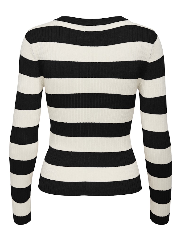 Deze fijn gebreide dunne trui is een aangesloten model en heeft een normale lengte. Fijn te dragen op een frissere zomerse dag of alvast voor het najaar.