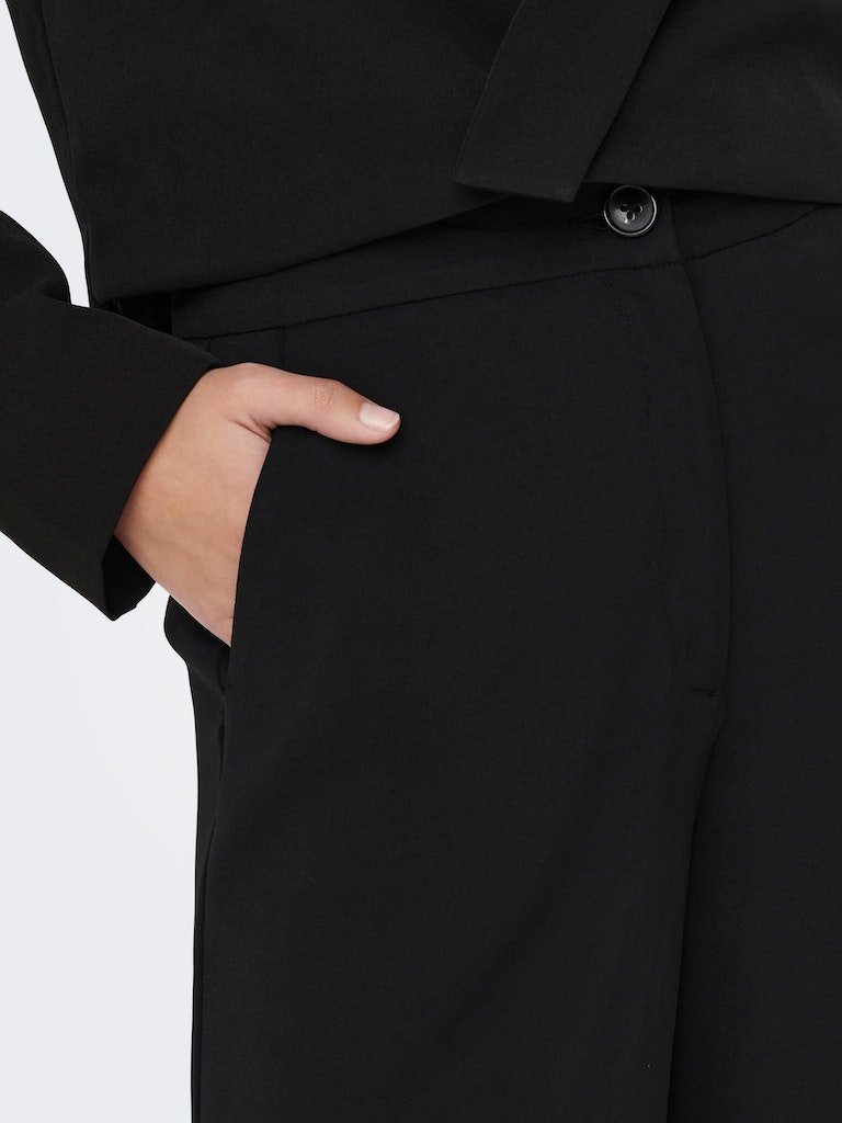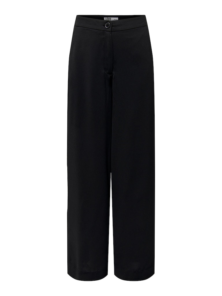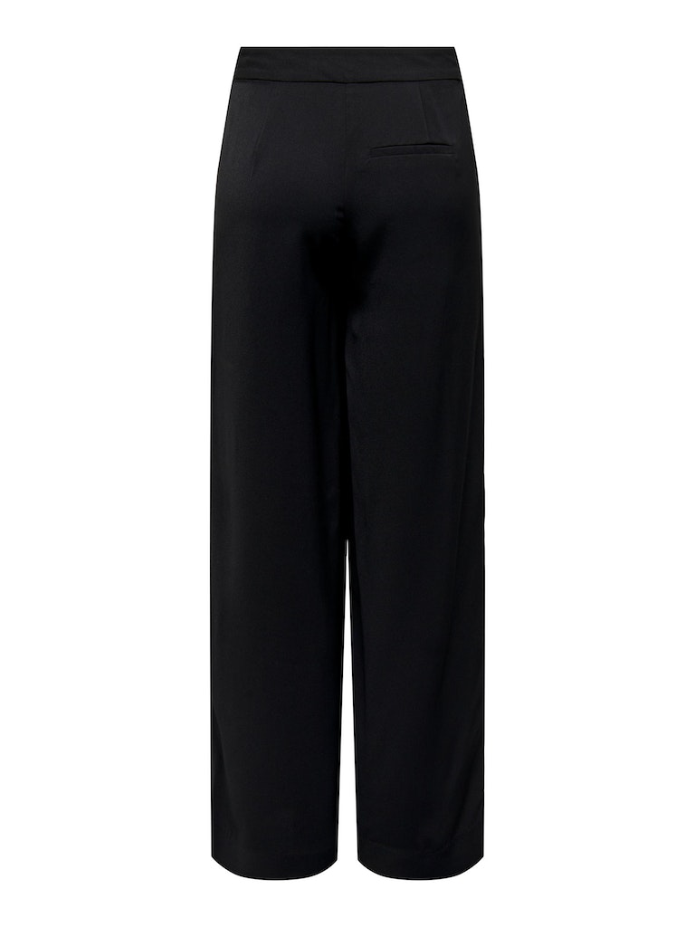 Deze high waist broek is een regular fit met een knoop/rits sluiting. Aan de achterkant een nep paspelzak en aan de voorkant twee steekzakken. Deze broek met wijde broekspijpen is verkrijgbaar in vier verschillende kleuren.