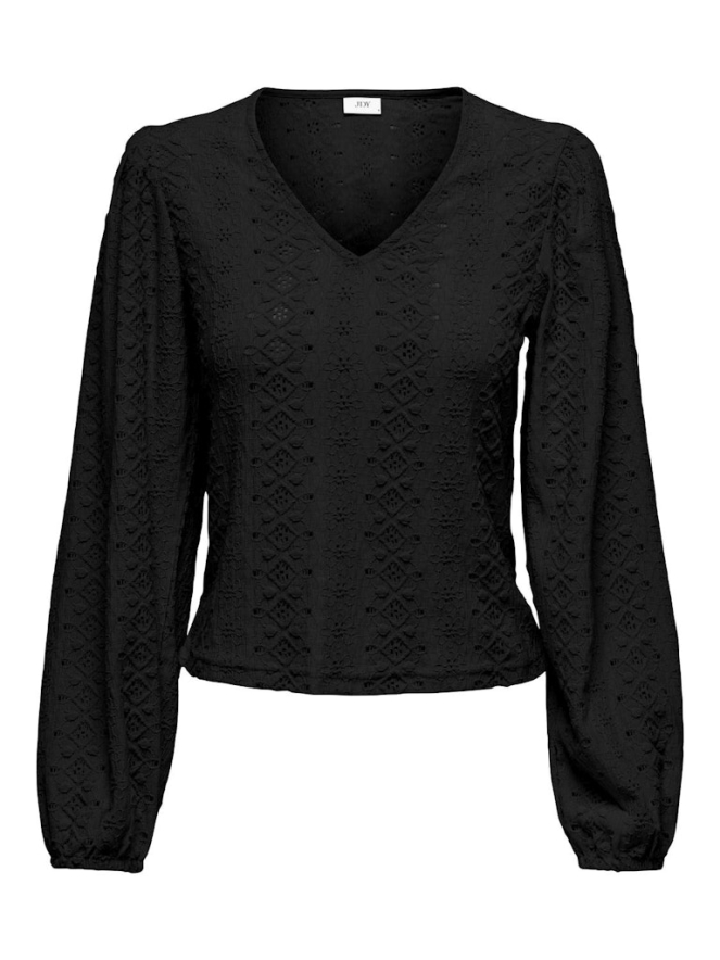 Sjiecke lace top van JDY met lage V hals en ballonmouwen. Draag er een hemdje onder om doorschijnen tegen te gaan en combineer het met een nette pantalon of jeans voor een meer casual look. Dit model valt iets wijder en is iets korter aan de onderkant.