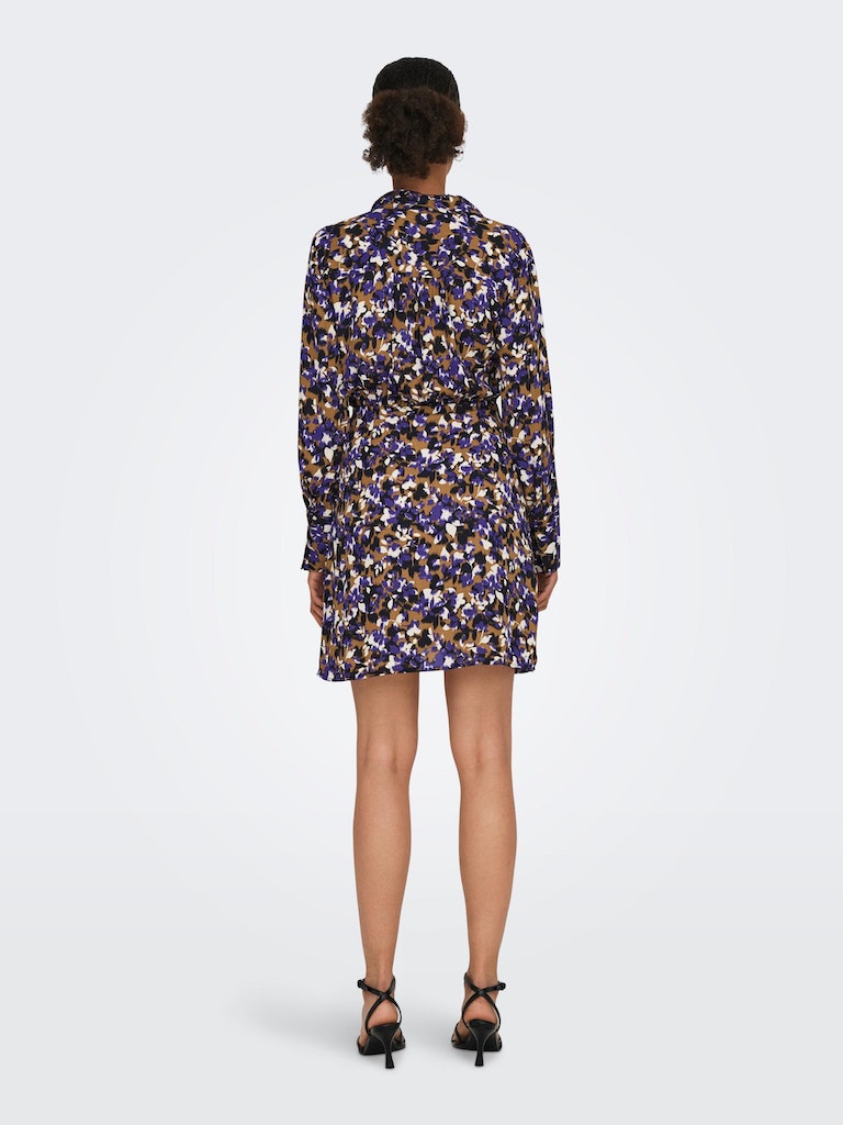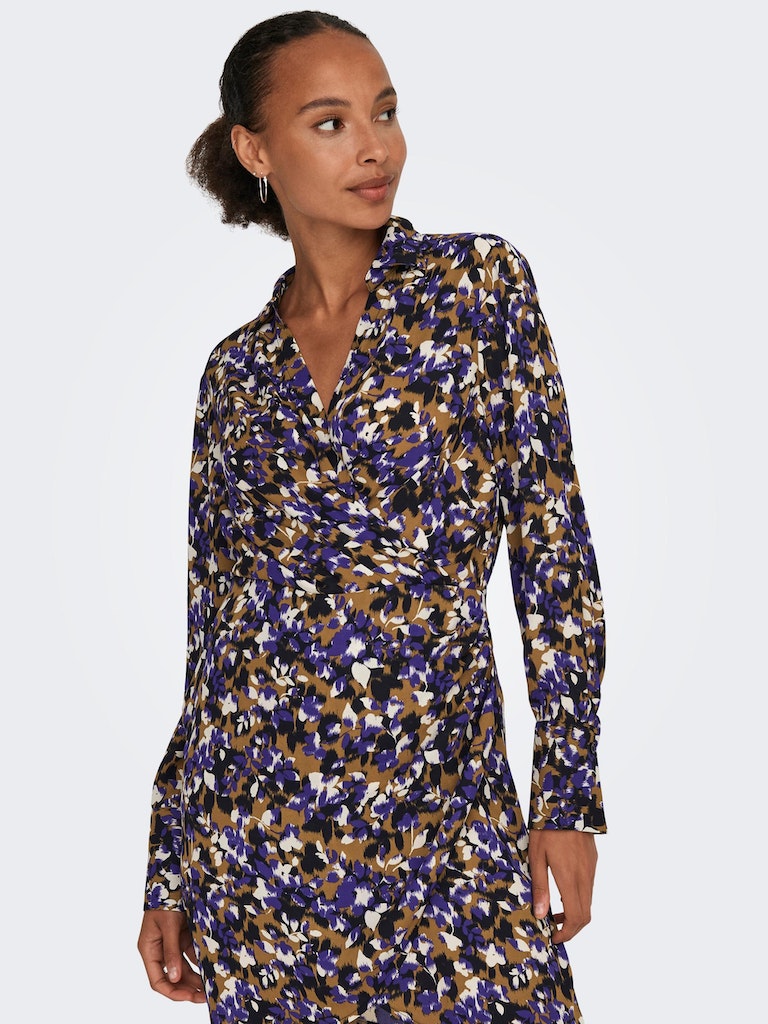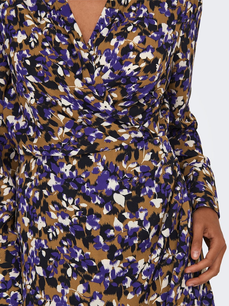 Middellange wikkel jurk met lange mouwen en een allover bloemen patroon.