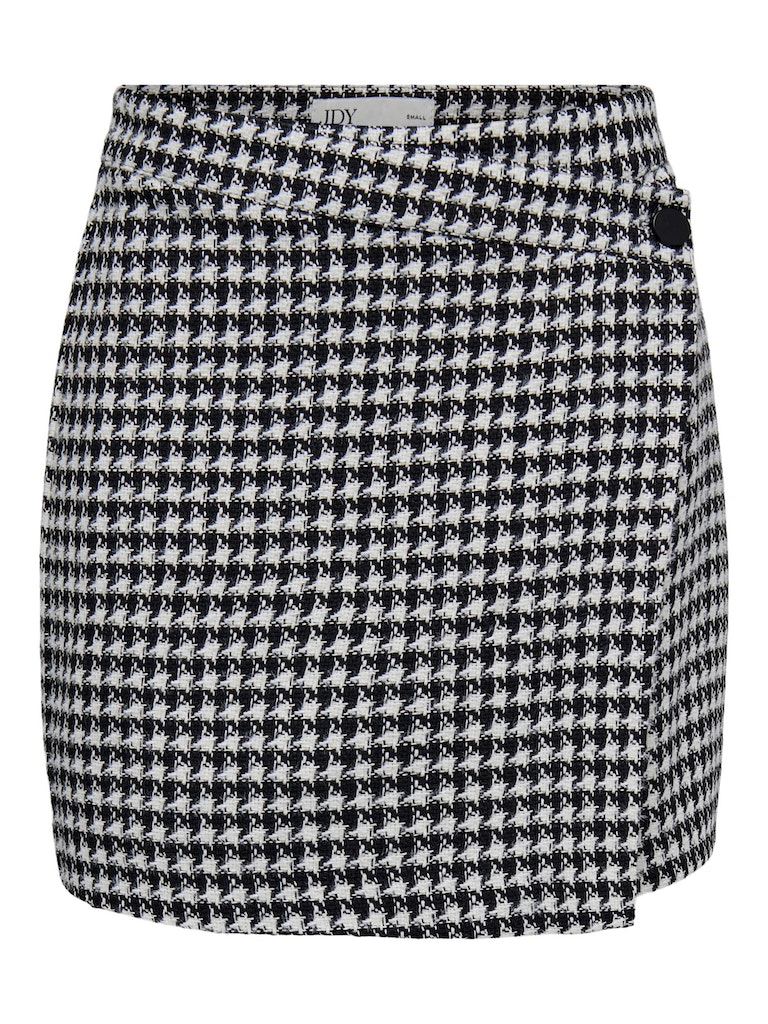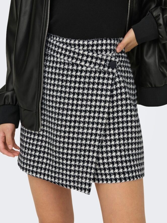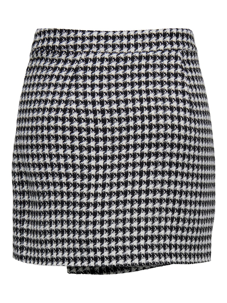 Dit rokje in Pied de Poule print is een overslag en kort model.