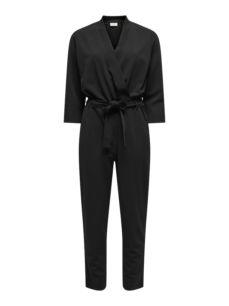 Jumpsuit met rechte pijpen, een strikceintuur, driekwart mouw en overslag aan de voorzijde.