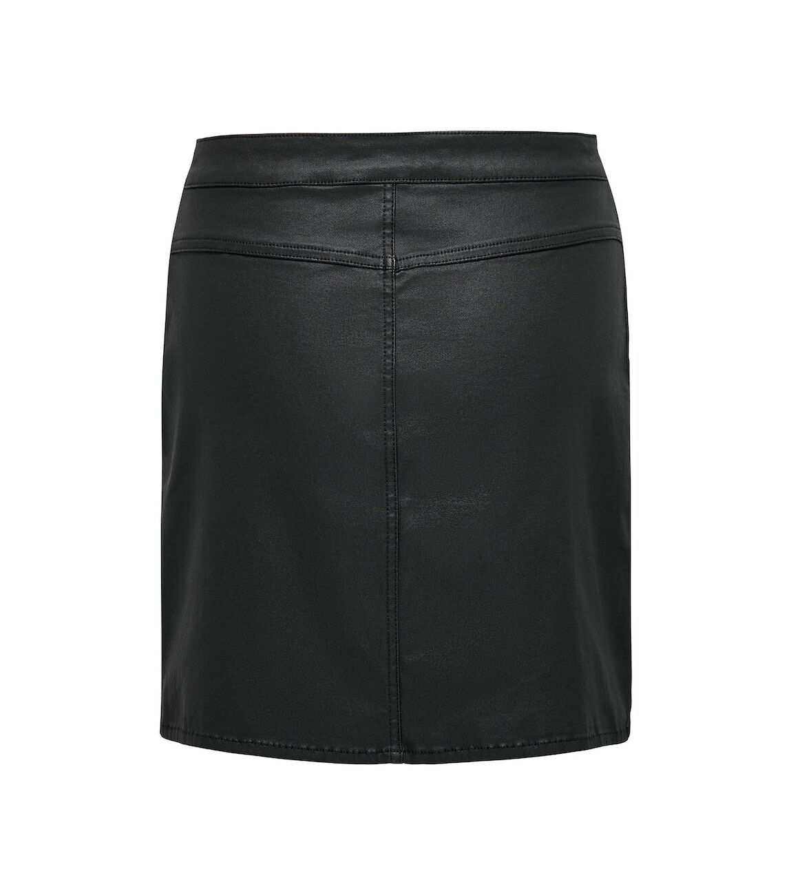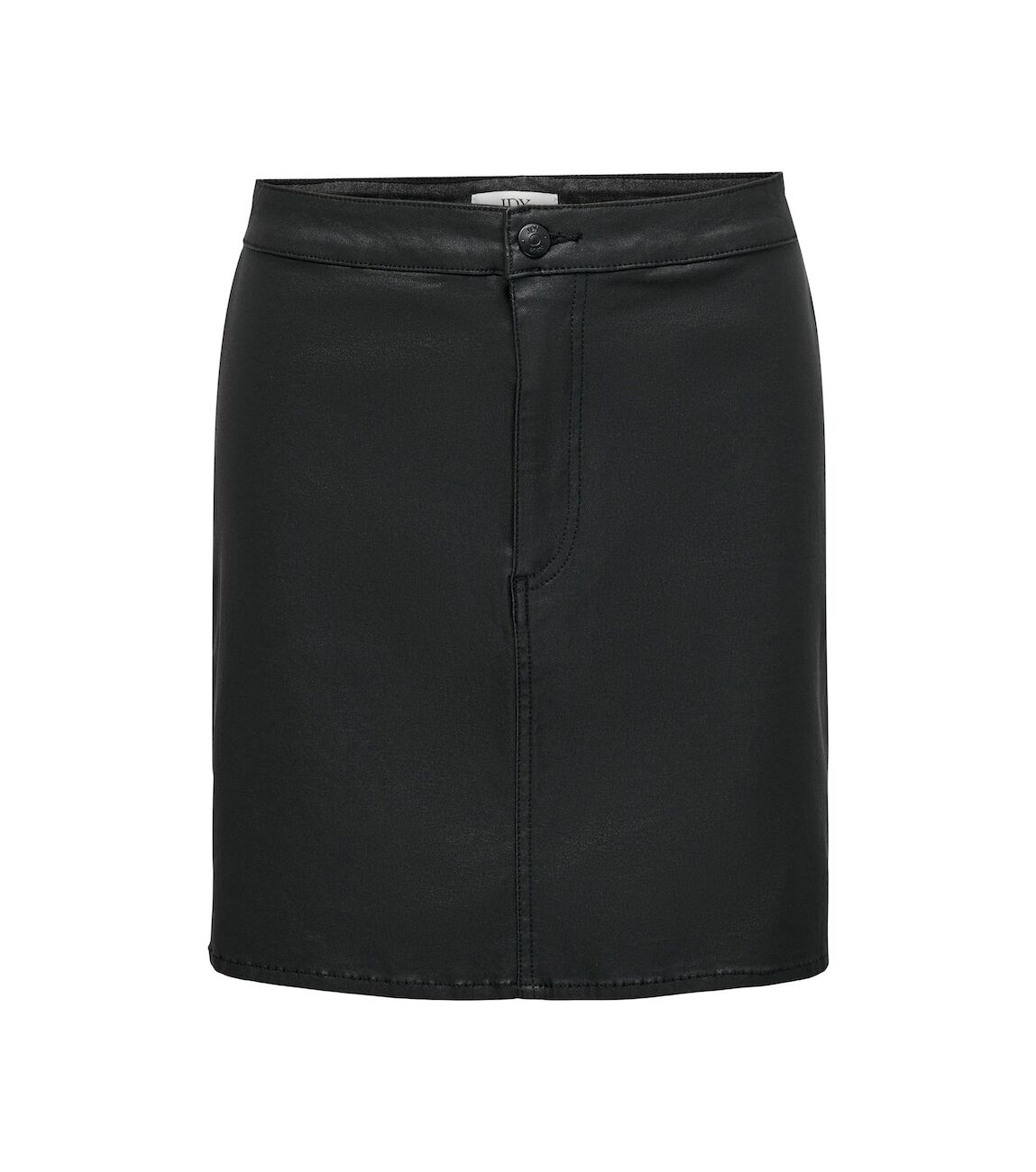 Deze korte rok heeft een leer look.