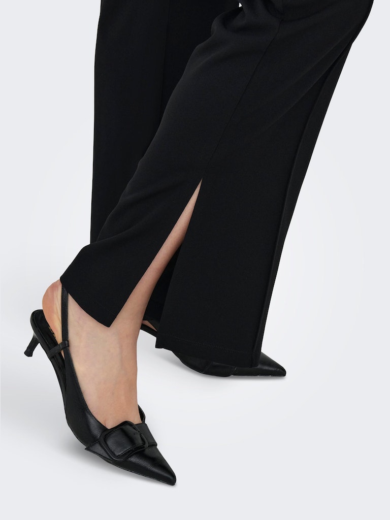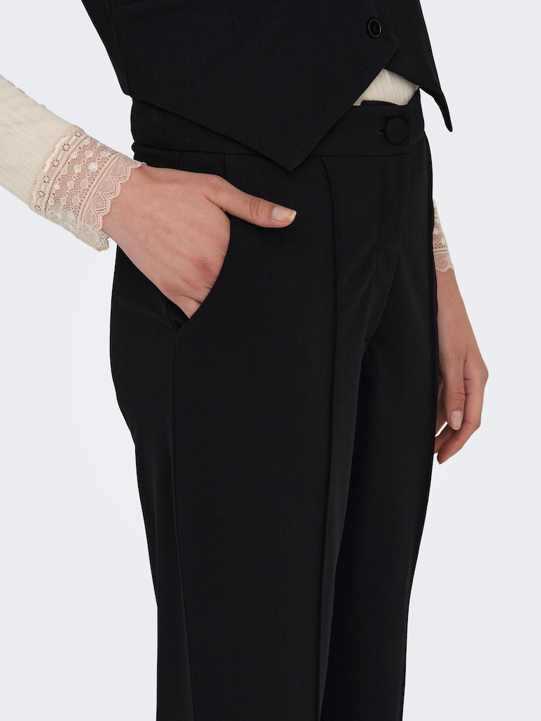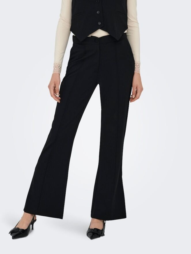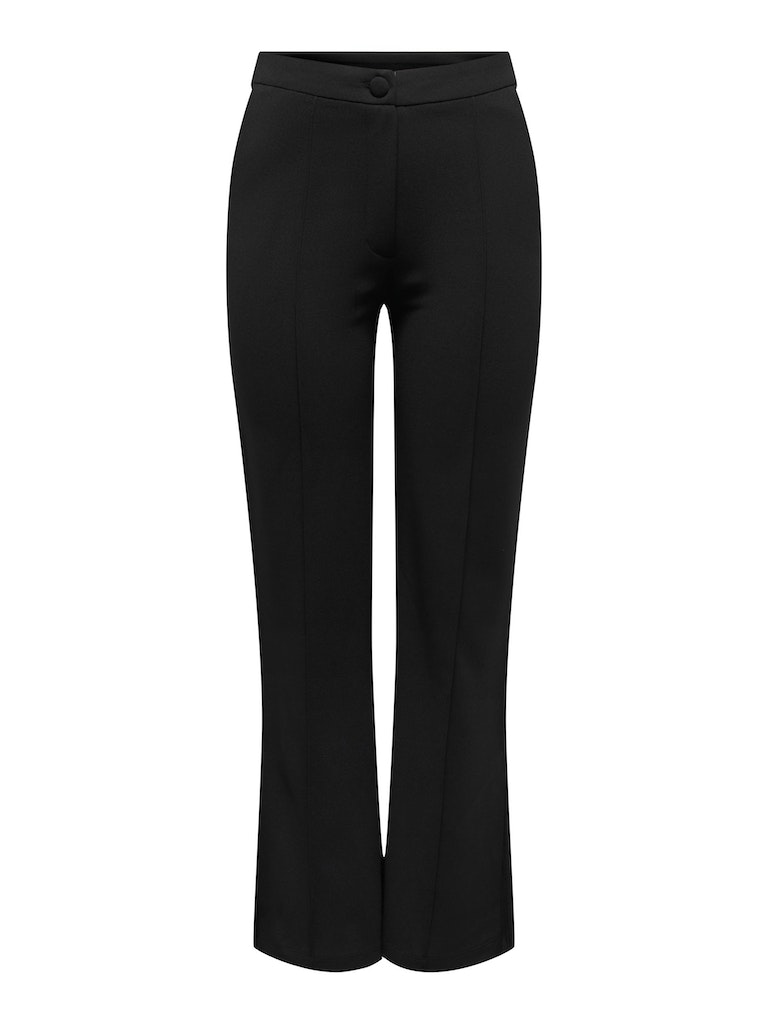 Deze nette damesbroek heeft twee steekzakken en is een recht model met over het bovenbeen een sierbies.