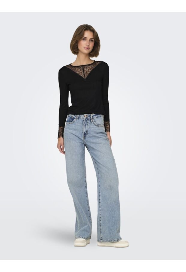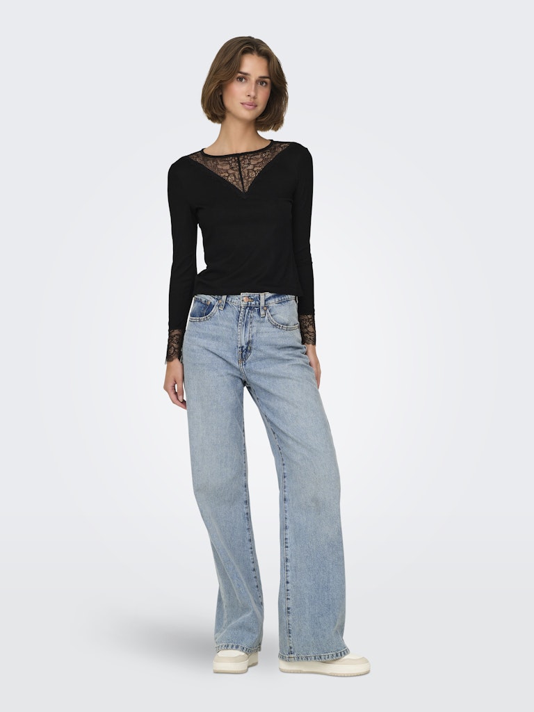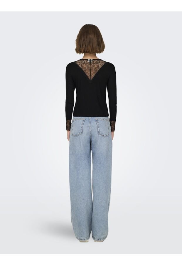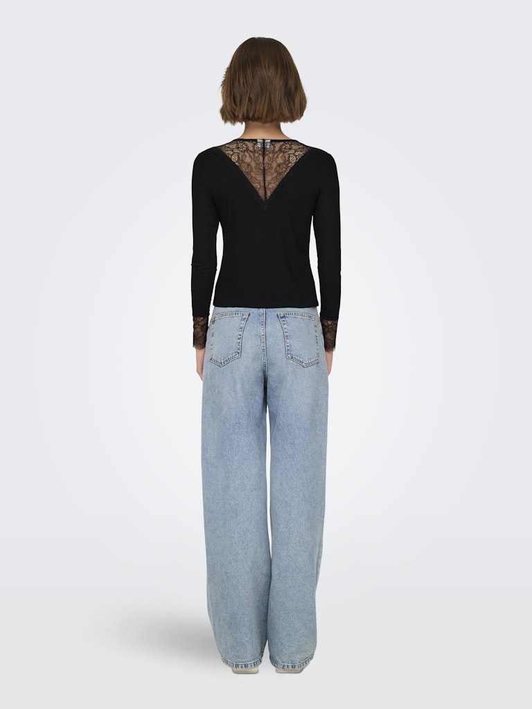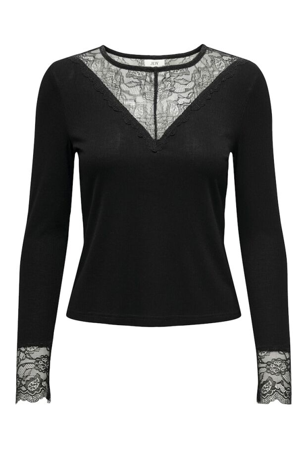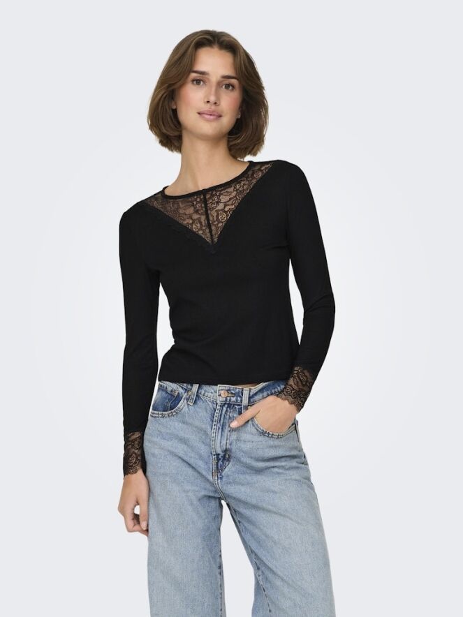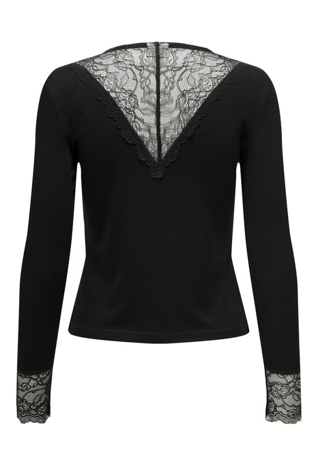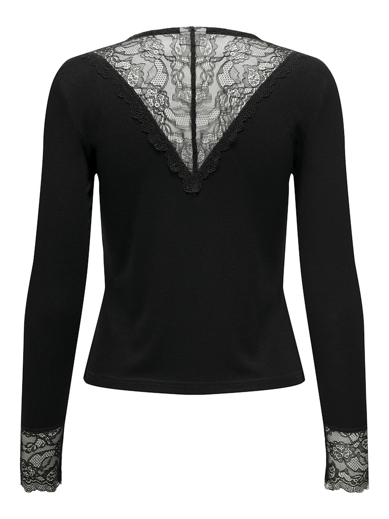 Prachtige top met lace ingezet in V-vorm aan de voor en achterkant maar ook aan het uiteinde van de mouw. Sierlijk en elegant, te dragen onder een blazer, gilet of zo gewoon! Echt even wat anders! We love it!