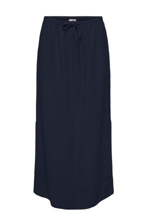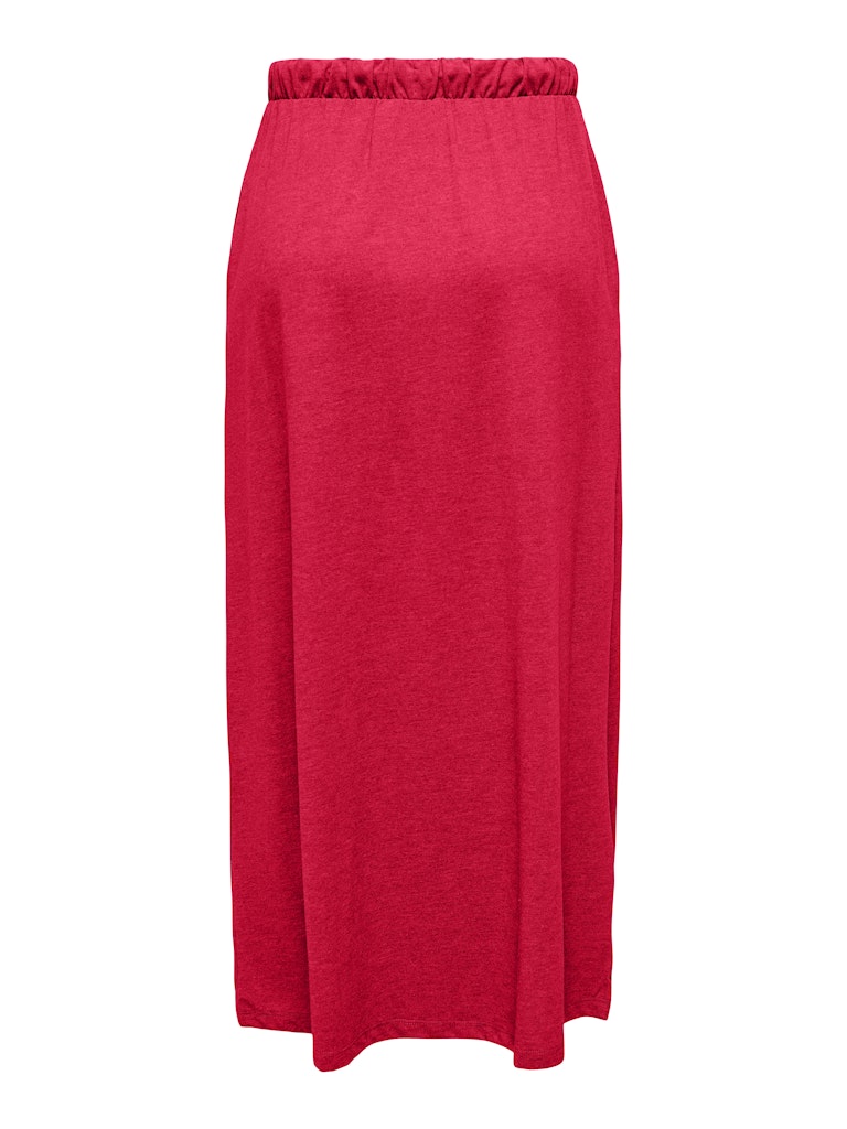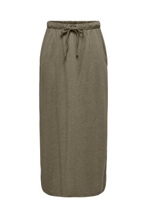 Fijne effen lange rok van dunne sweatstof. Deze rok heeft steekzakken dus dat draagt heerlijk nonchalant. Met een elastische taillband met koordje. Geen split, gewoon recht toe recht aan.