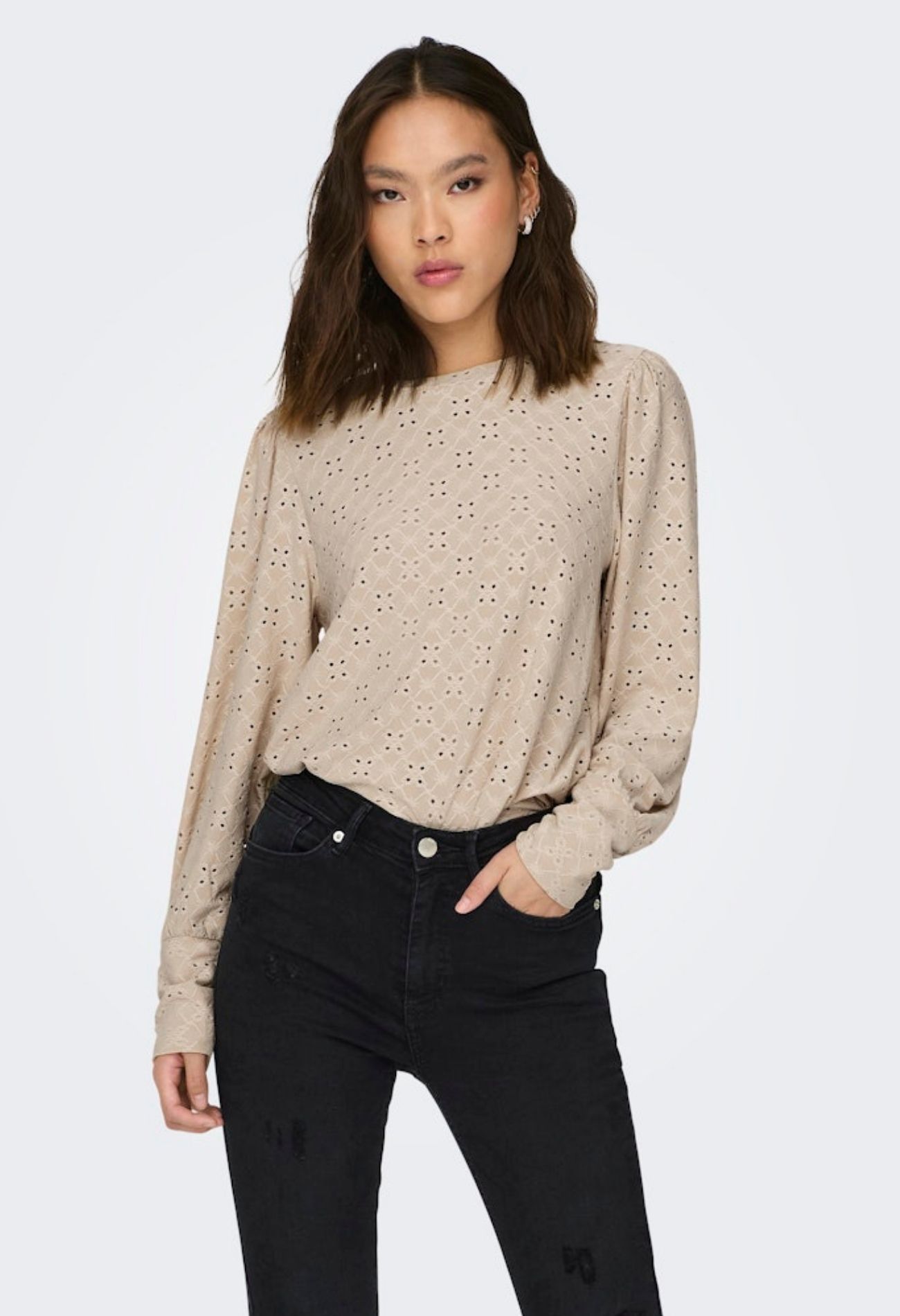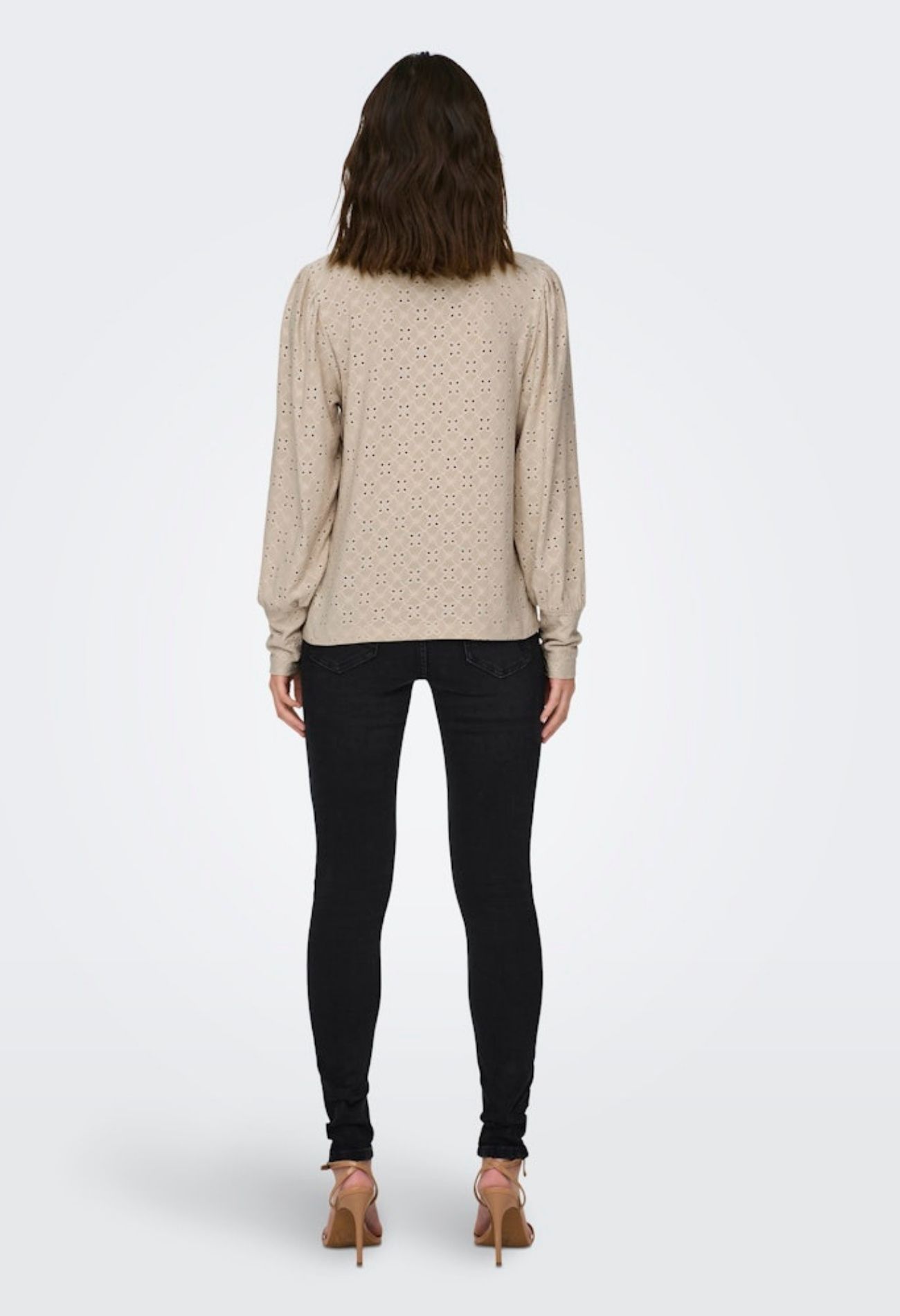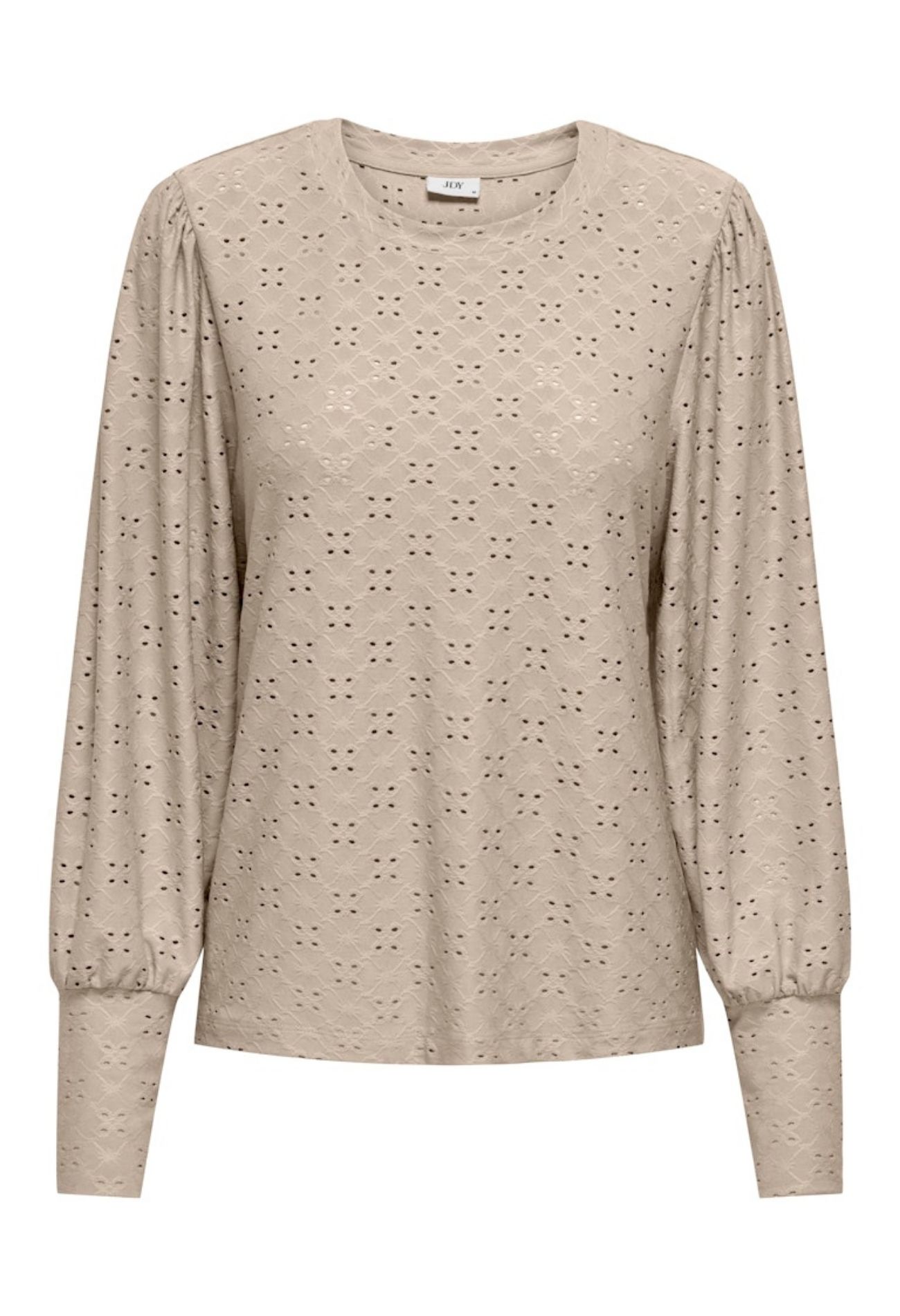 Deze top van ajour heeft een pofmouw inzet met lange manchetten. Draag een hemdje onder deze top om doorschijnen te voorkomen. Combineer het met een warm giletje of leuke blazer voor een trendy chique stijl.