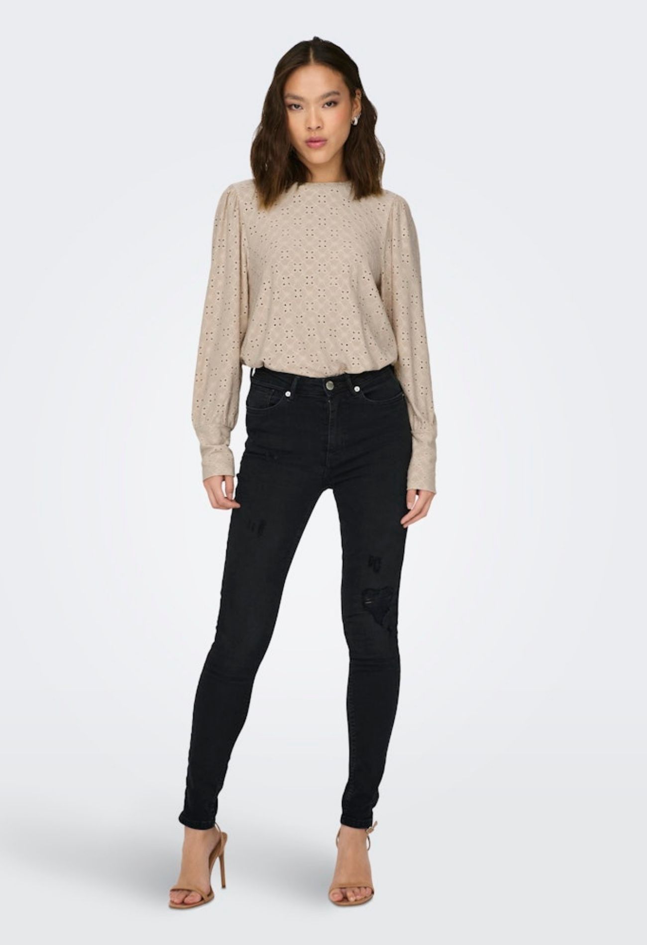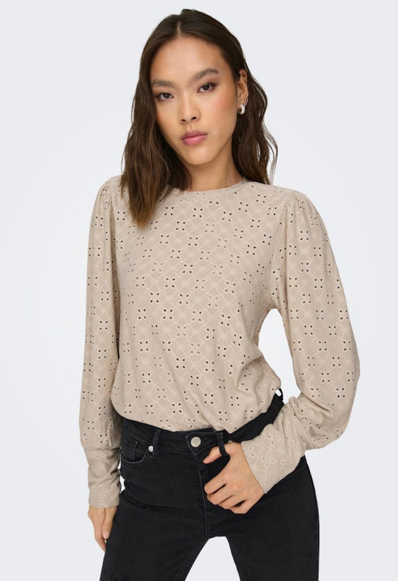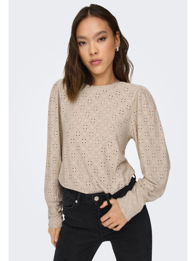 Deze top van ajour heeft een pofmouw inzet met lange manchetten. Draag een hemdje onder deze top om doorschijnen te voorkomen. Combineer het met een warm giletje of leuke blazer voor een trendy chique stijl.