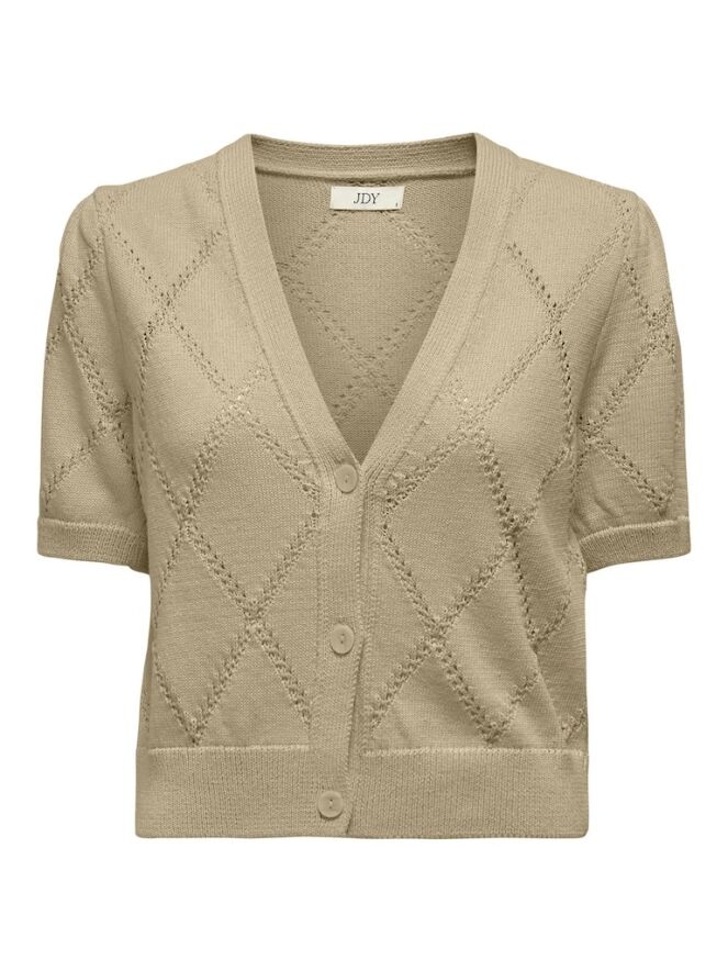 Het perfecte accessoire voor zomerse dagen en koele avonden is dit prachtige lichtgekleurde vestje met korte mouwen. Elegant door zijn haakpatroon en veelzijdig te stylen. Gemaakt van hoogwaardig gerecycled cotton biedt dit vestje je comfort maar ook duurzaamheid. Of je nu een avondwandeling maakt op het strand of dat wijntje pakt op het terras.