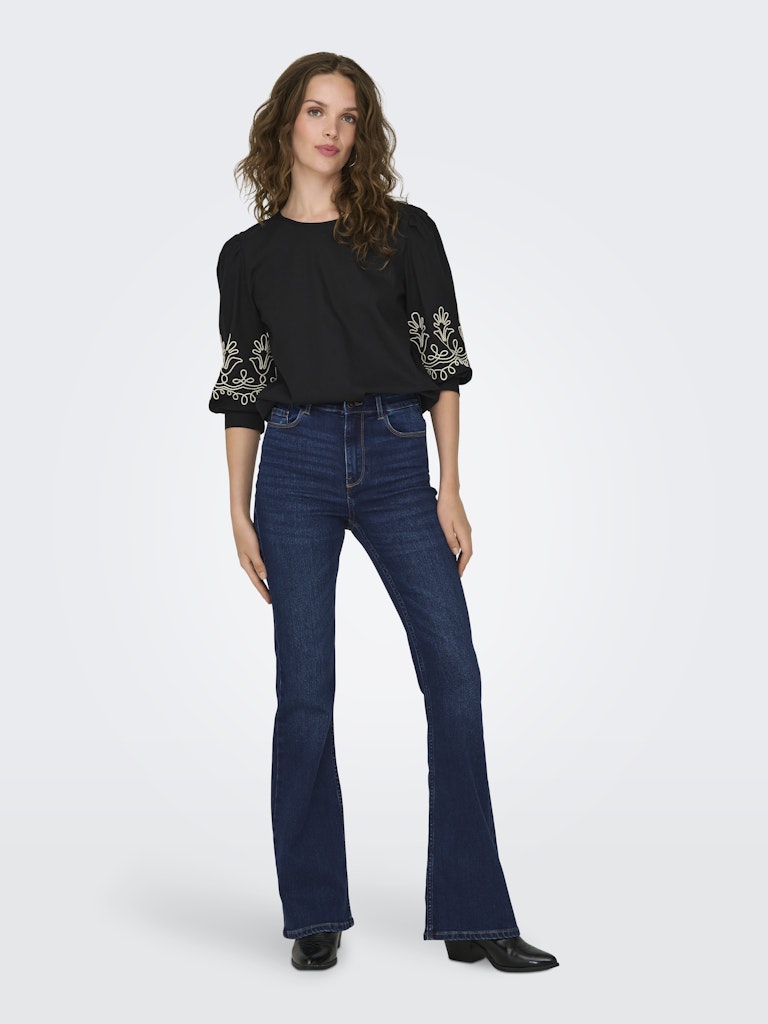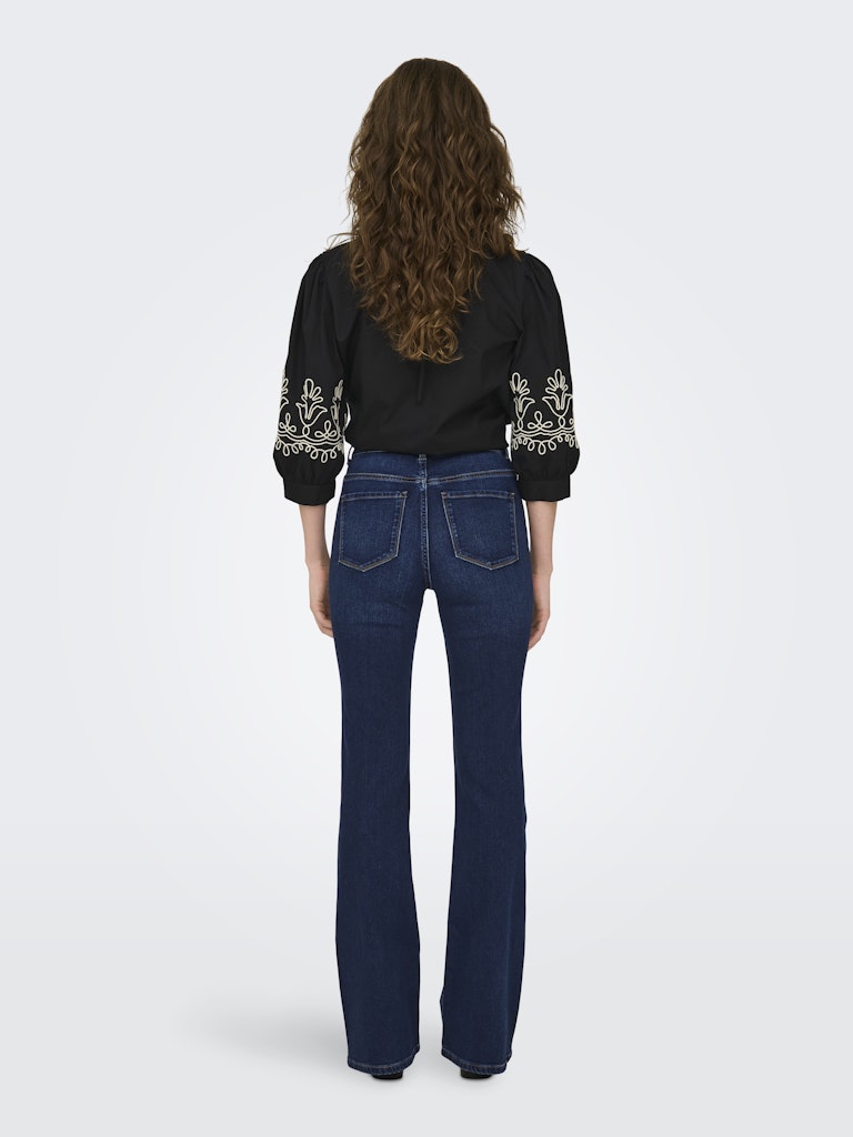 Deze jeans is een flare model en sluit hoog. 5 Pockets, met een vertrouwde portie stretch. Basic, tijdloos en eindeloos te combineren.