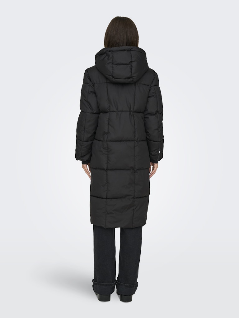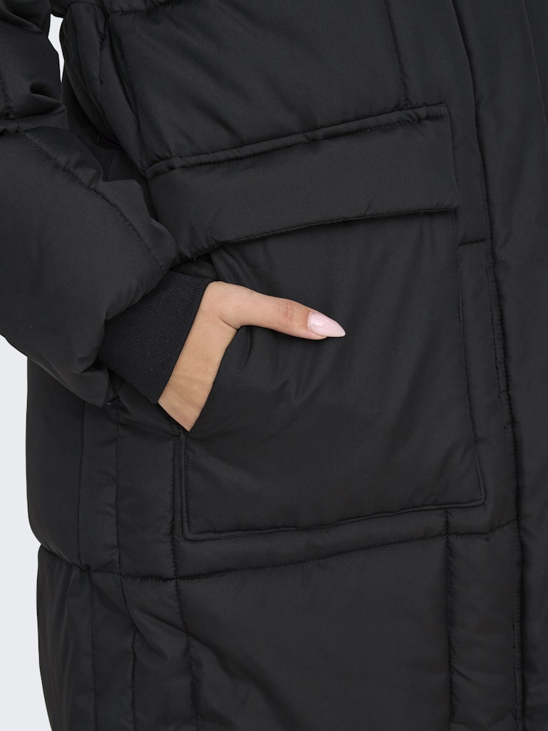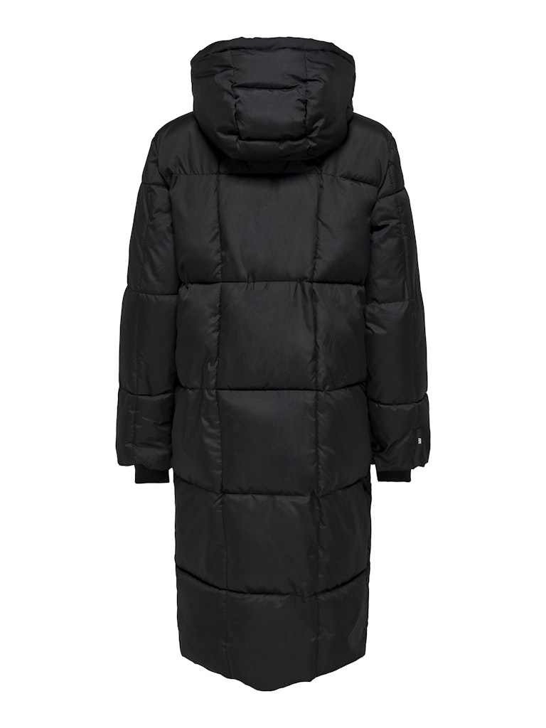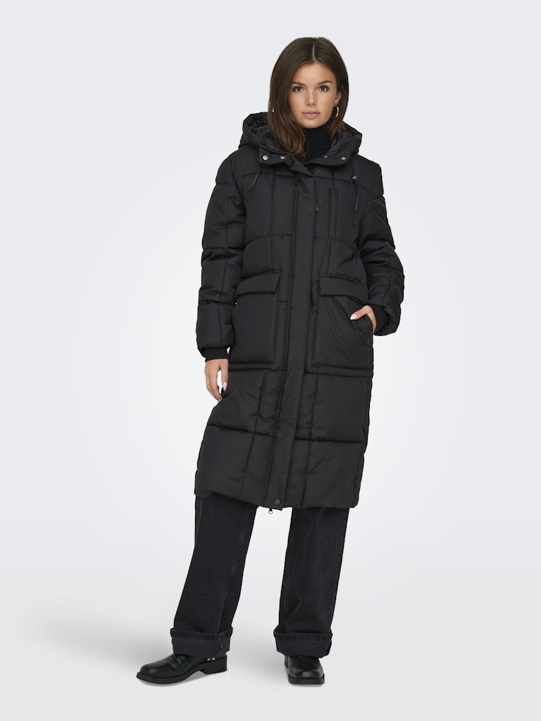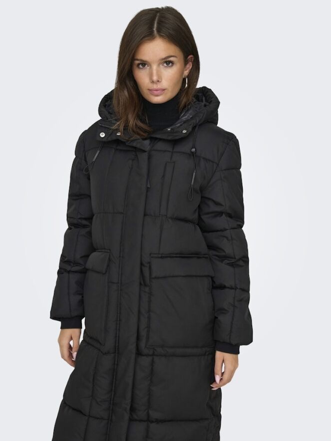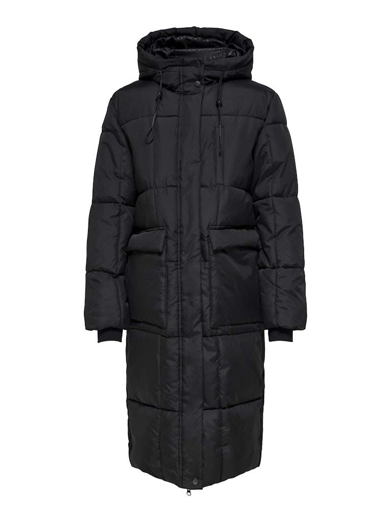 Lange zwarte winterjas van JDY met twee grote klep en steekzakken voorop. Vaste capuchon en hoog sluitende hals. De rits van deze jas is ontzettend praktisch doordat deze ook open kan van onderen. Handig als je even snel op de fiets moet of in de auto zit! Let op dit is een ruimvallend model!