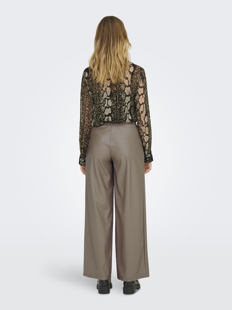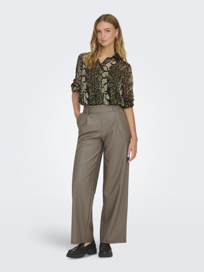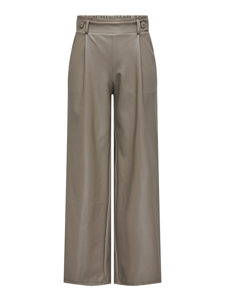 We got it! Altijd al een fake leather lange broek willen hebben? Joehoe, hier is hij! Deze broek met wijde pijpen heeft 2 heerlijk nonchalante steekzakken en sierlijke knopen voor op de tailleband. Leuk te combineren met een basic wit T-shirt en de bijpassende blazer ook van JDY!