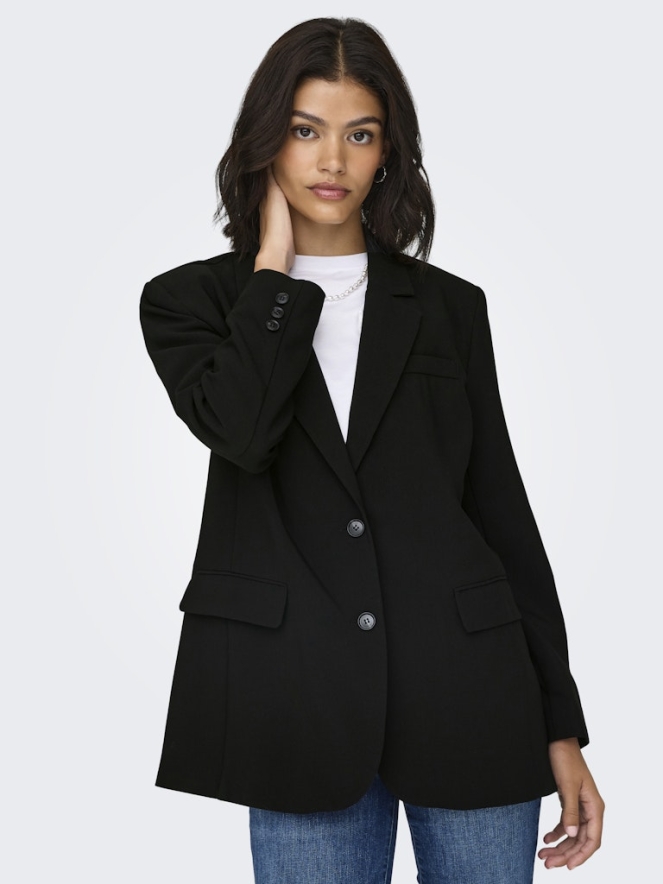 Deze blazer in winterse kleuren is een oversized model. Met twee klepzakjes en een sier paspelzakje op de borst is dit een trendy item. Draag het over een blouse of eenvoudig T-shirtje op een pantalon of jeans en je gaat stijlvol de dag door!