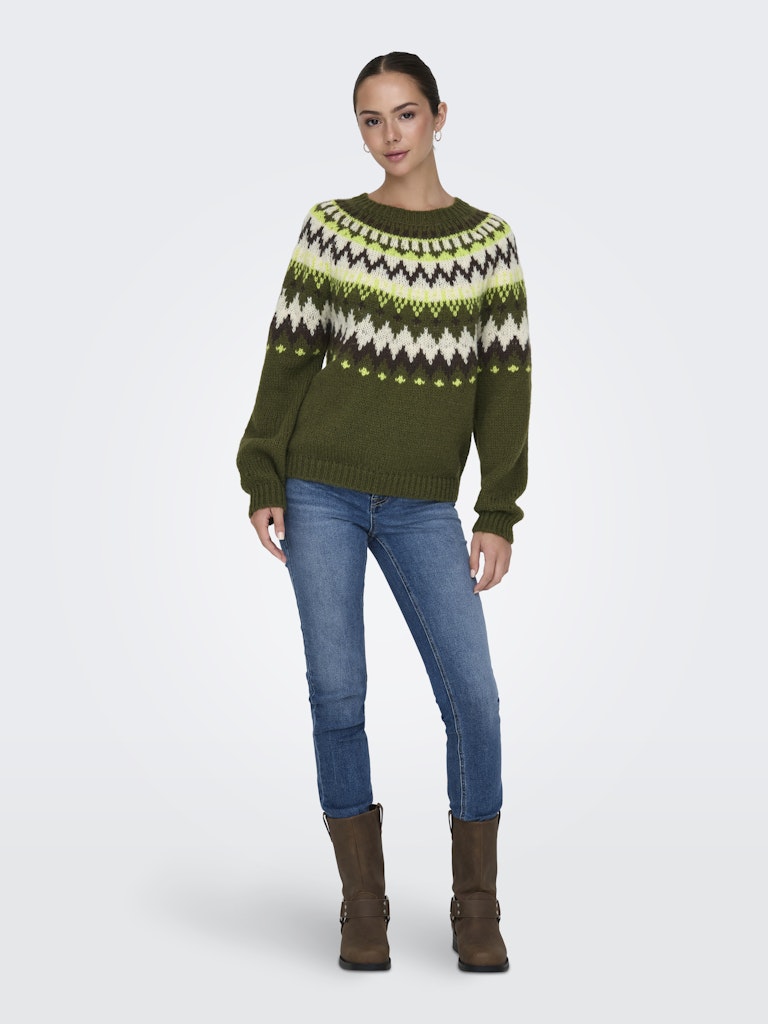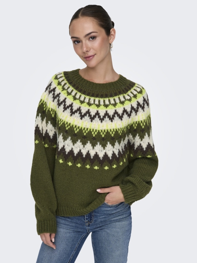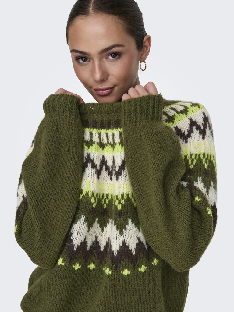 Scandinavische Noorse trui van JDY waar je het al warm van krijgt als je er naar kijkt. Deze tijdloze grof gebreide trui heeft weinig introductie nodig. Ziet er gaaf uit, is tijdloos, geeft jou warmte en wordt vanaf nu jouw lievelingstrui.