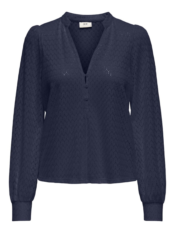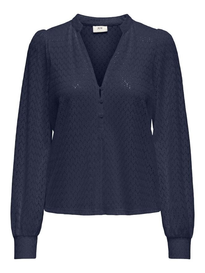 Sjiecke lace top van JDY met V hals. Door de 'lace stof' is deze top flink doorschijnend. Draag er daarom iets onder in bijpassende kleur om doorschijnen te voorkomen.