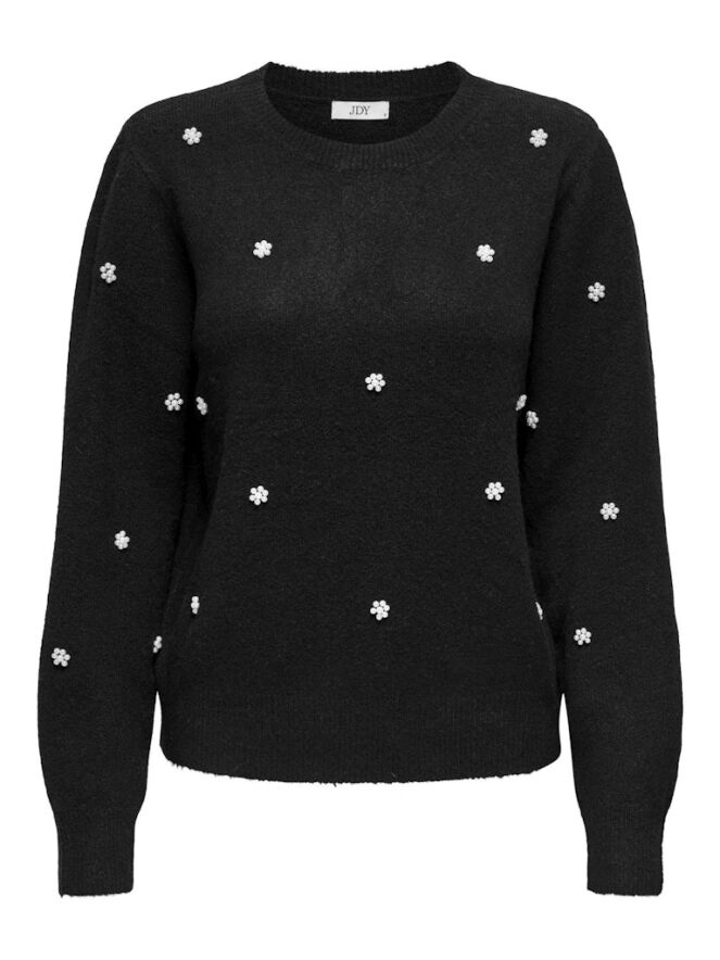 Leuke trui van JDY met opgestikte pareltjes in de vorm van bloemen. Deze trui verfraaid jouw look! Combineer het voor een classy comfy look met je lievelings spijkerbroek en je bent ready to go!