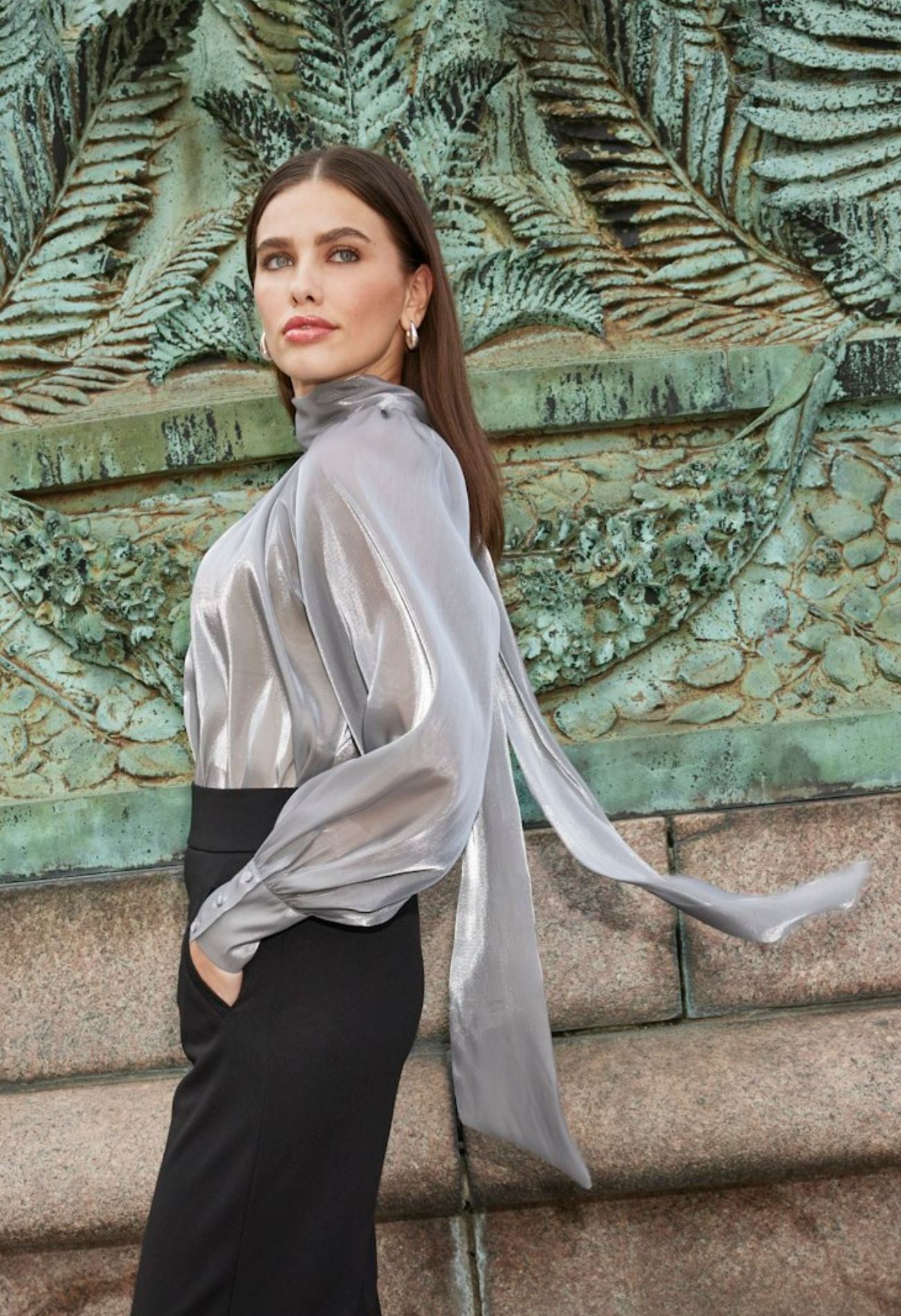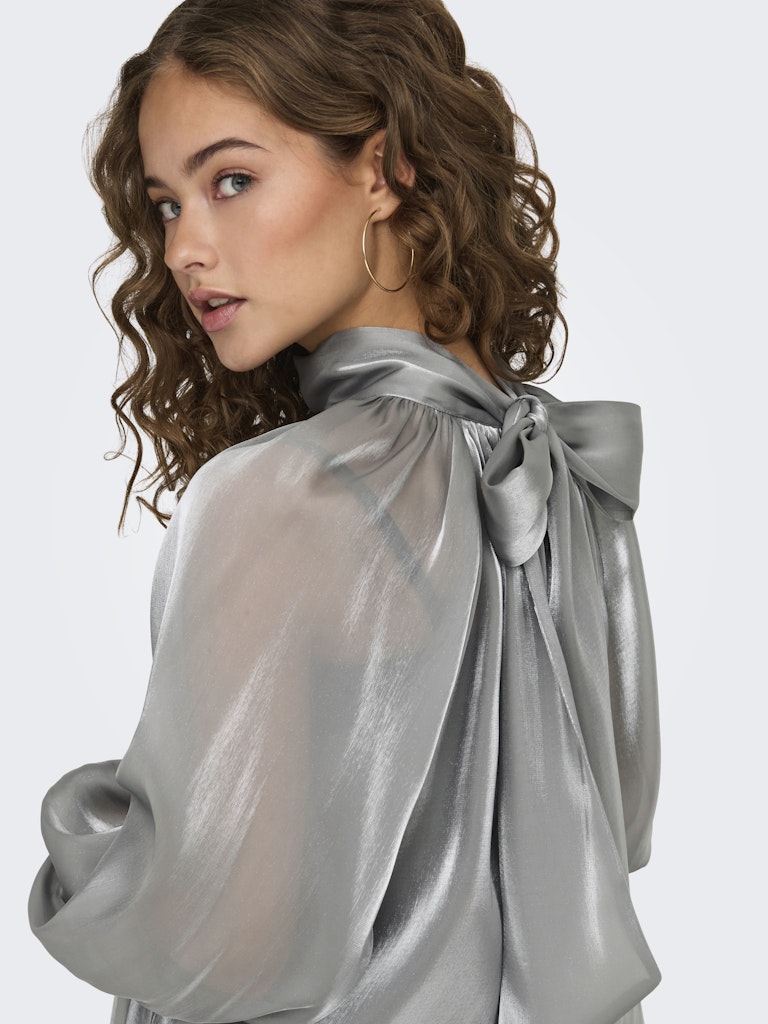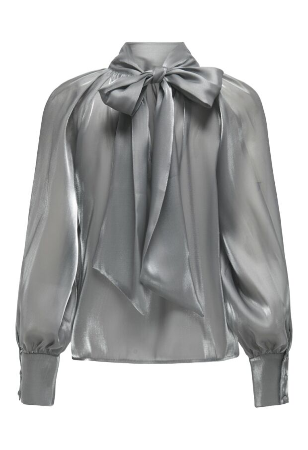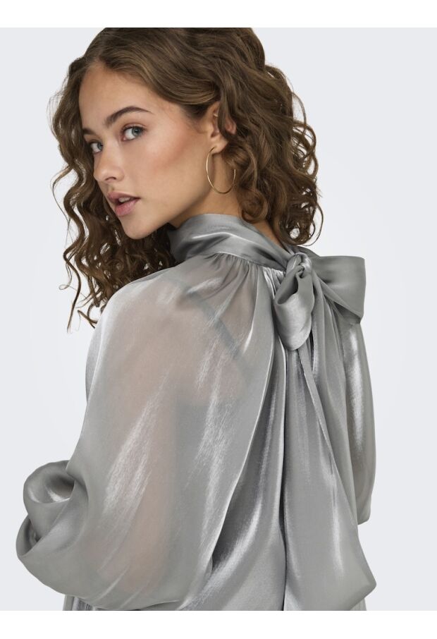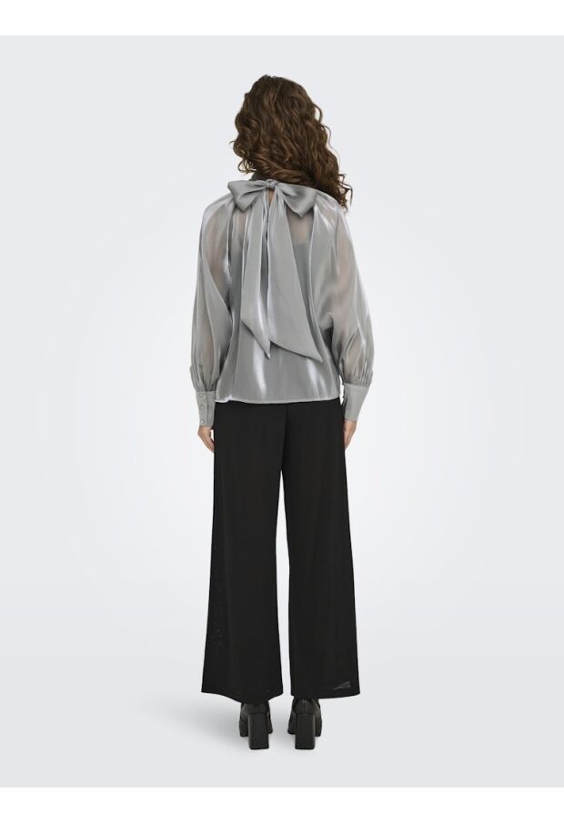 Elegante damesblouse met strikdetail op de rug, gemaakt van een geweven stof. Perfect voor een chique en verfijnde look!