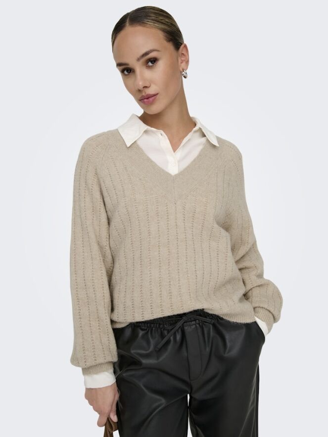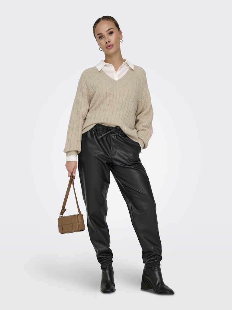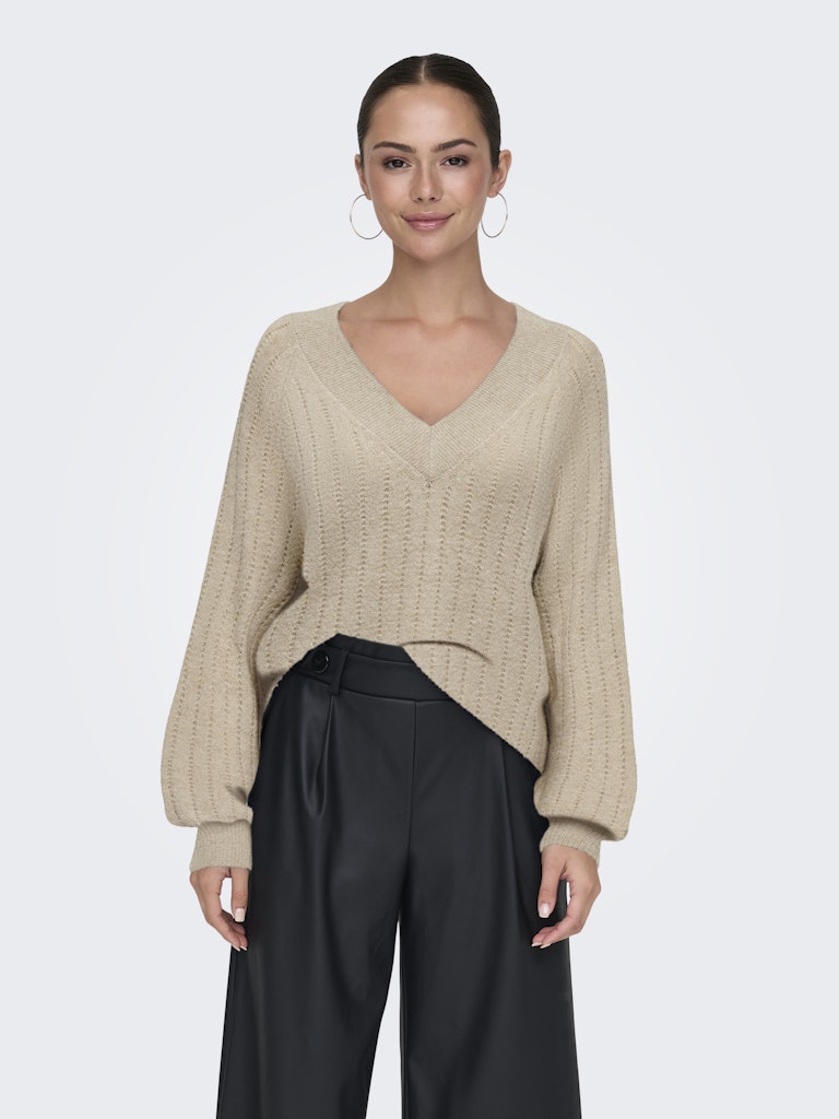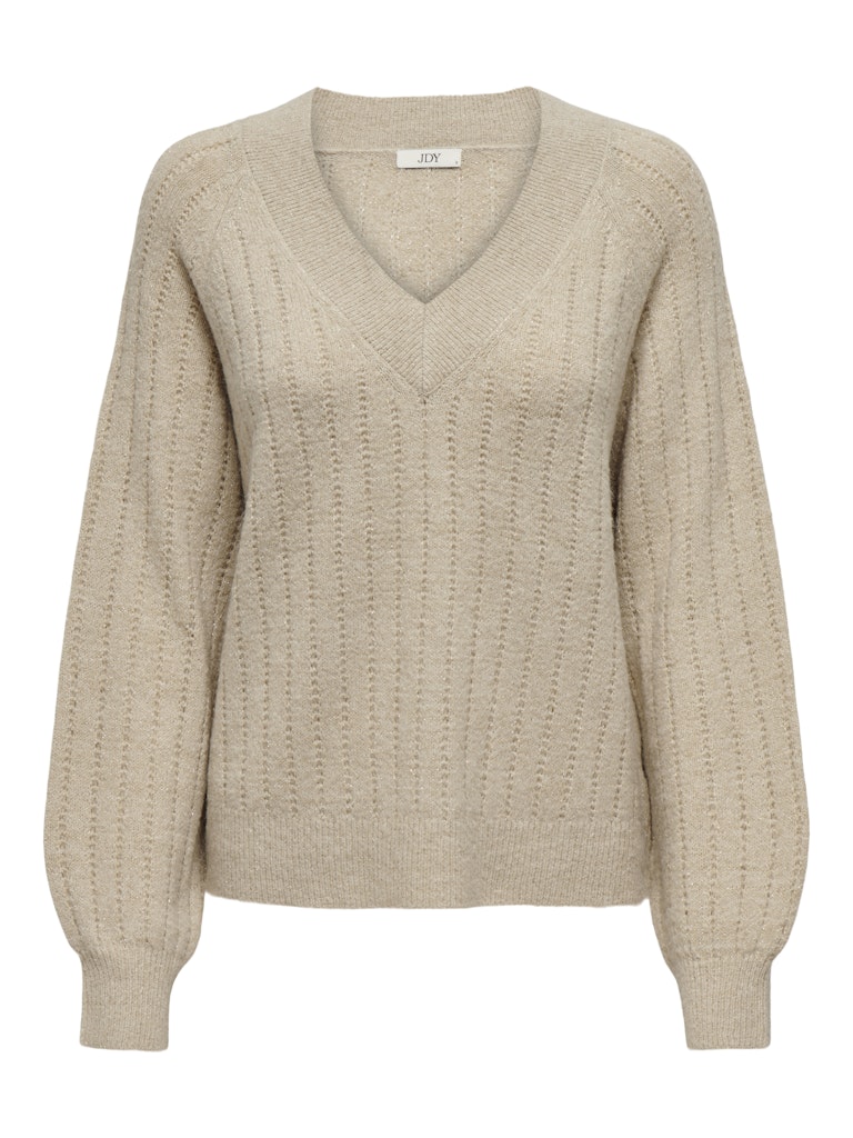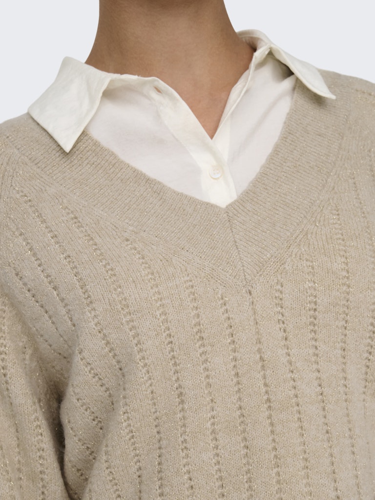 Fijne ruimvallende trui met een allover glitter verweven in de trui. Leuk voor de wintermaanden en zo zit je er toch feestelijk maar warm bij!